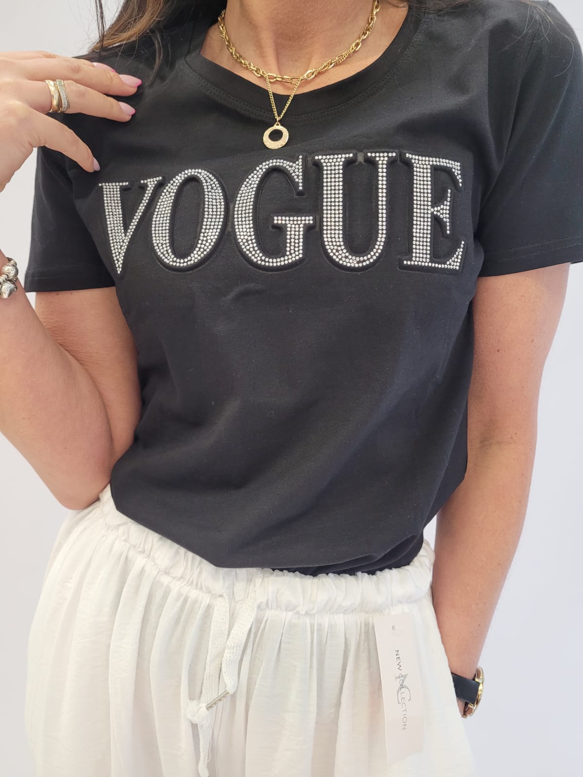 Bawełniana gładka bluzka z delikatnym napisem z cyrkonii w kolorze czarnym.