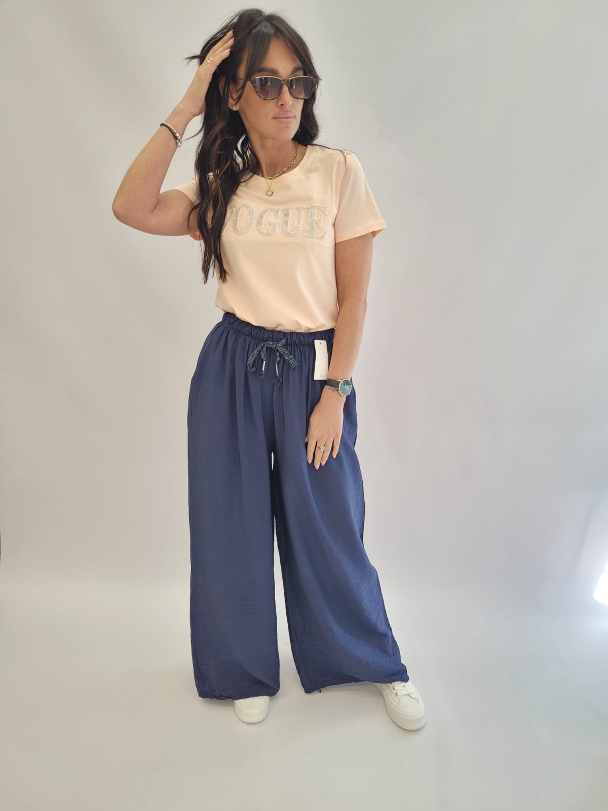 Bawełniana gładka bluzka z delikatnym napisem z cyrkonii w kolorze jasnego różu.