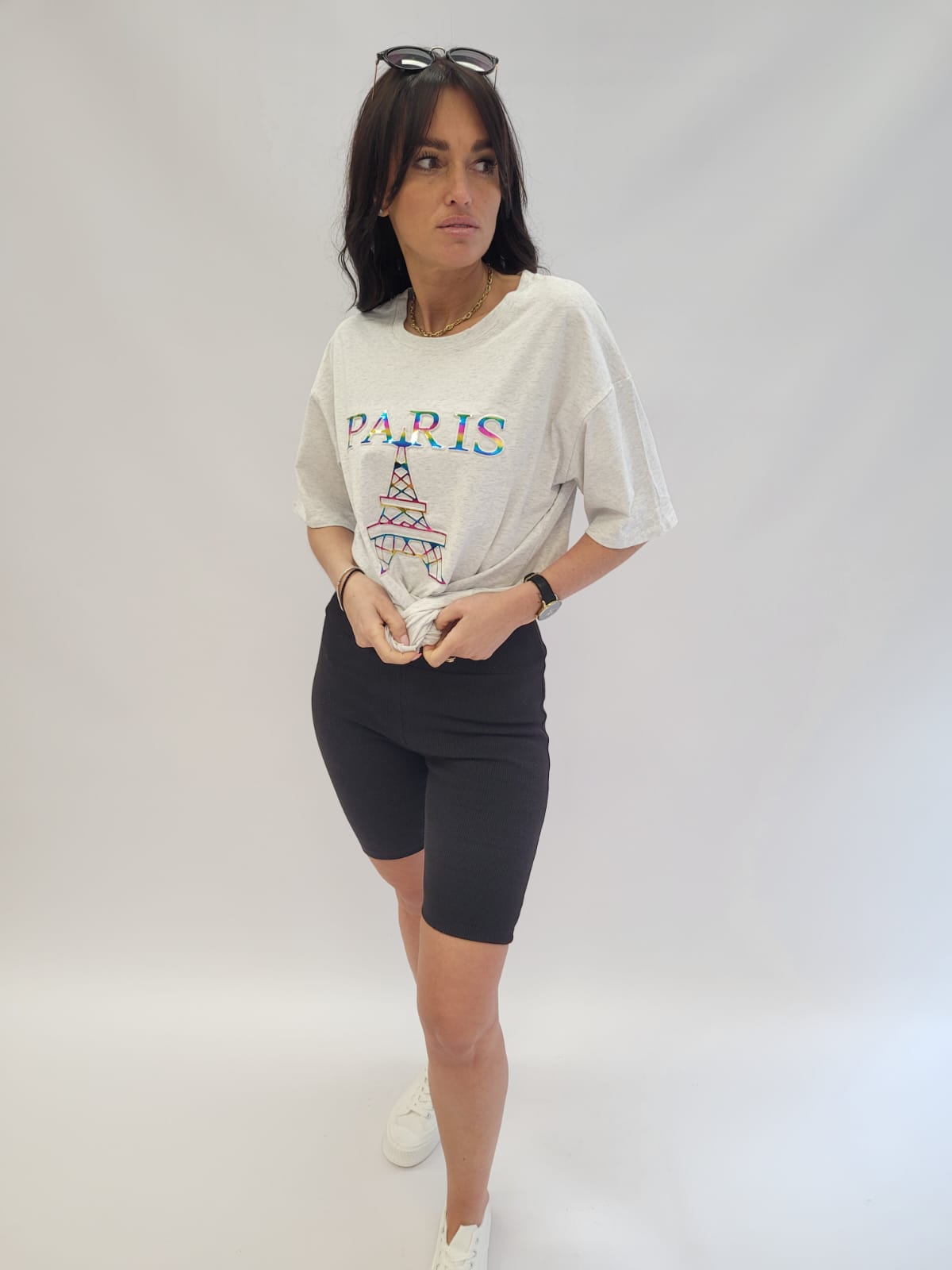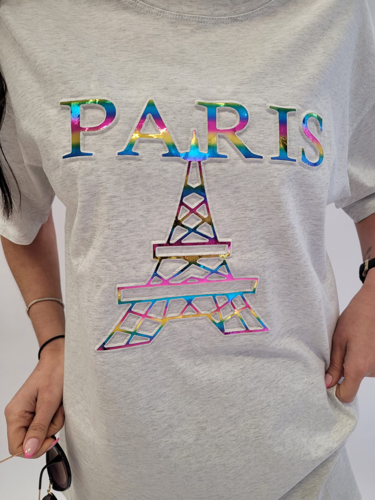 Bawełniana gładka bluzka z krótkim rękawem jasno szara z kolorowym wzorem