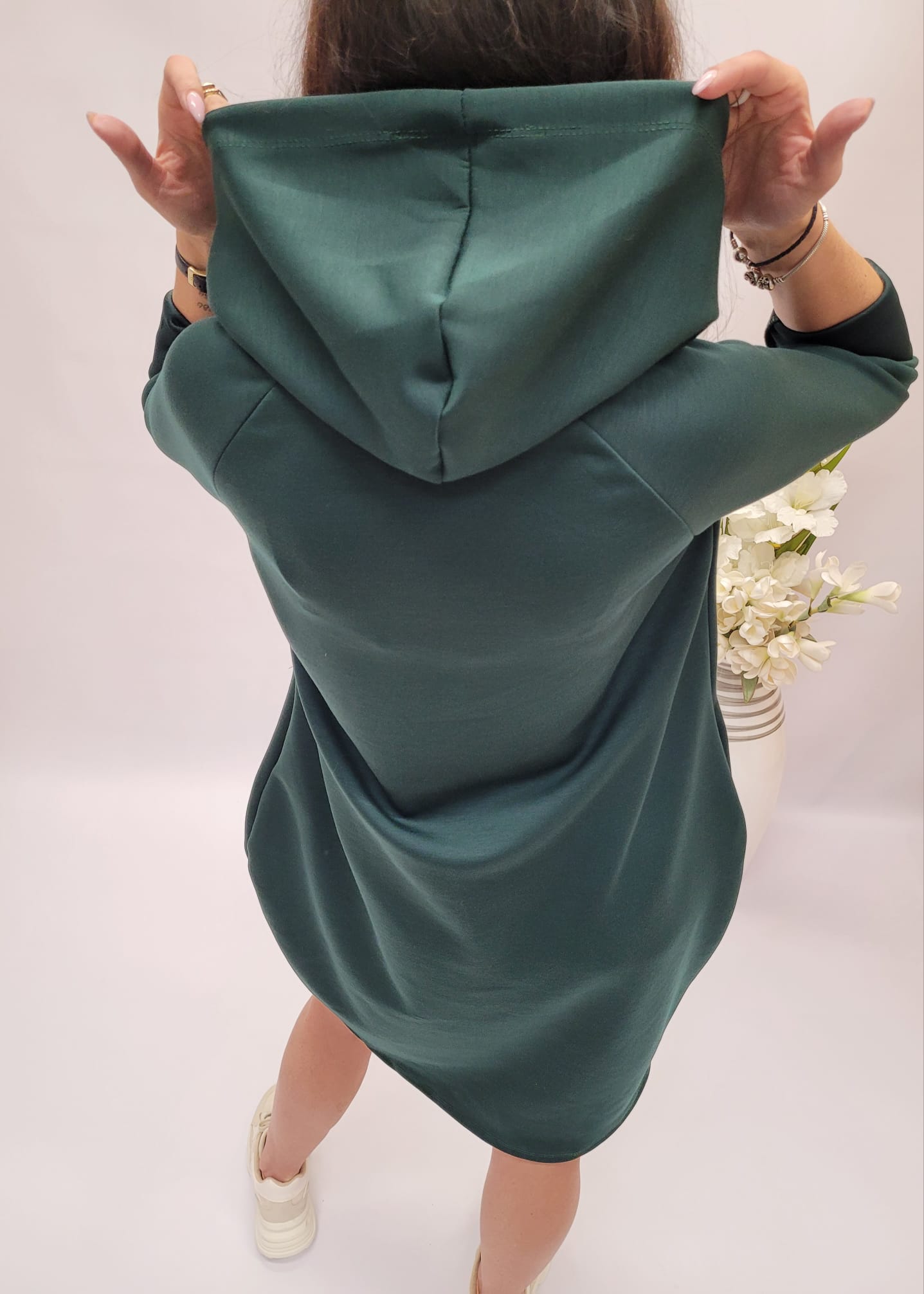 Długa gładka bluza z kapturem to idealne połączenie wygody i minimalistycznego stylu. Wykonana z miękkiego i przyjemnego w dotyku materiału, otula ciało i zapewnia komfort przez cały dzień. Prosty wydłużony fason doskonale sprawdza się w chłodniejsze dni, a praktyczny kaptur chroni przed wiatrem i zimnem.
