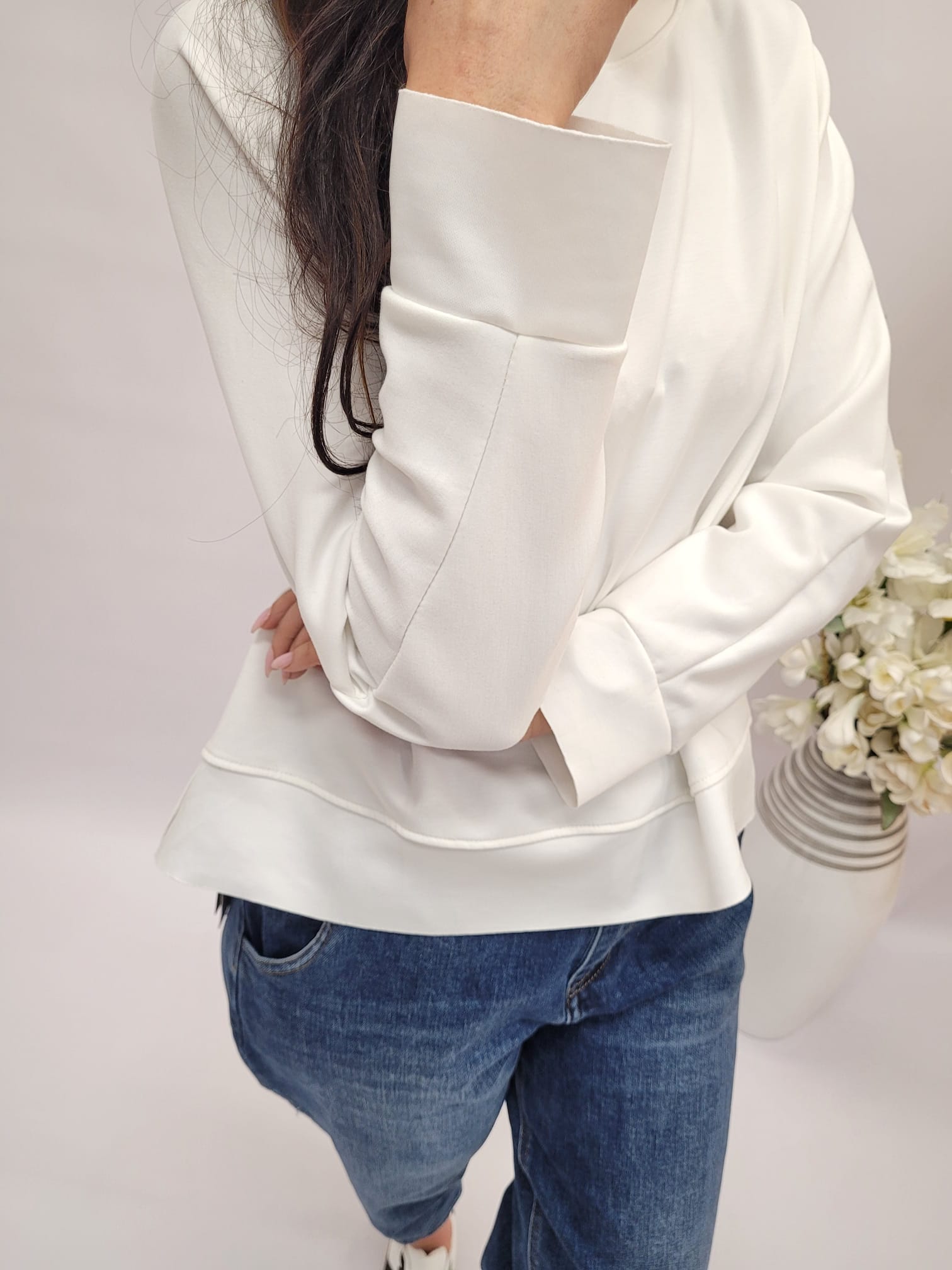 Krótka bluza o uniwersalnym kroju to must- have w każdej garderobie. Wygodna, miękka i przyjemna w dotyku- idealna na co dzień. Dzięki prostemu fasonowi świetnie łączy się zarówno z jeansami, legginsami jak i spódnicami.