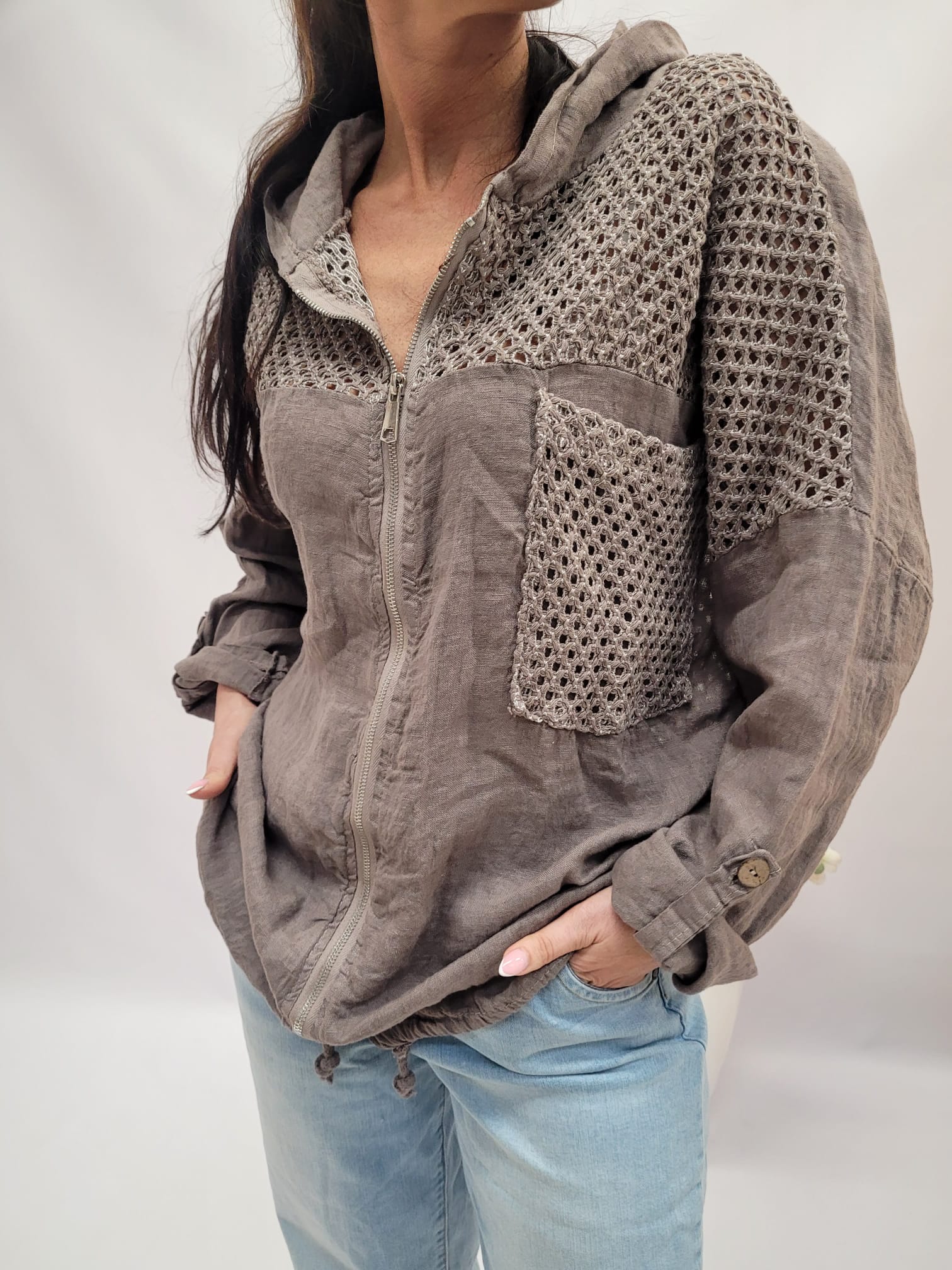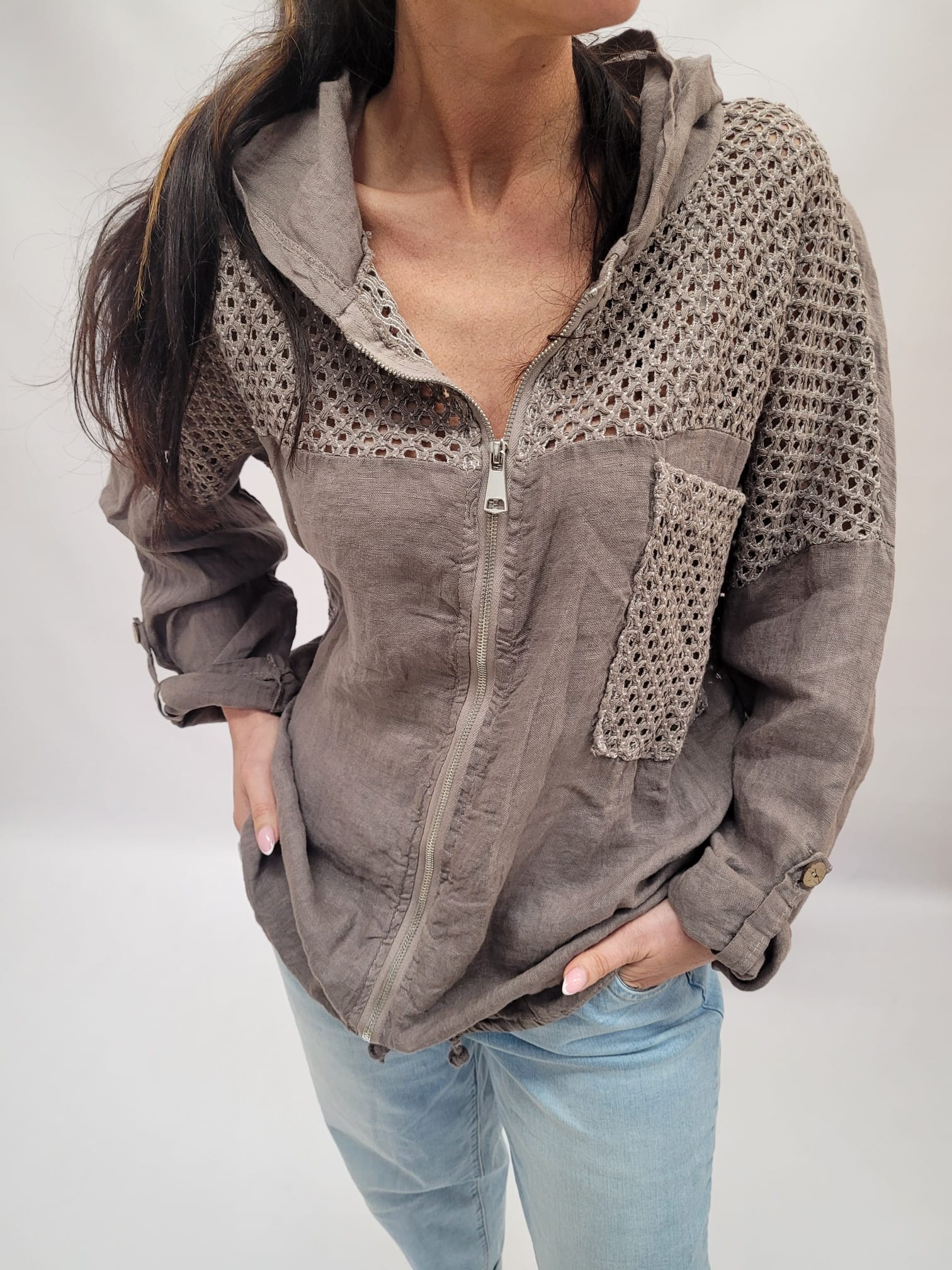 Bluza na zamek z ażurowym wykończeniem to idealne połączenie komfortu i stylizacji. Wykonana z miękkiej, przyjemnej w dotyku bawełny zapewnia wygodę noszenia przez cały dzień. Klasyczny krój z przednim zapięciem błyskawicznym sprawia że bluza doskonale sprawdzi się zarówno w codziennych jak i bardziej stylowych stylizacjach.