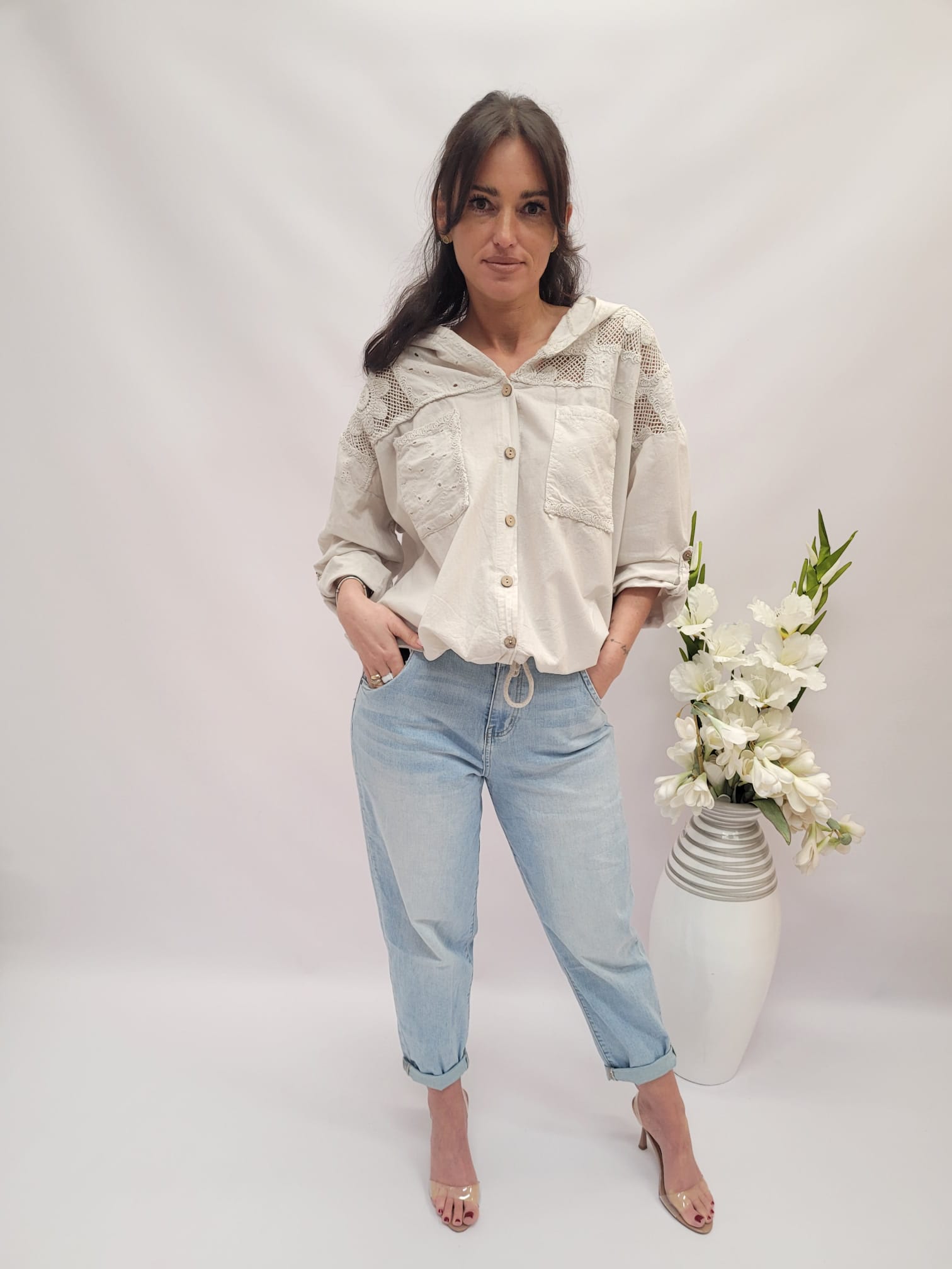 Bluza damska z kapturem, guzikami i koronką- romantyczny casual w stylu boho. Ta wyjątkowa bluza łączy w sobie wygodę codziennego stroju z subtelną elegancja. Wykonana z miękkiej delikatnej w dotyku bawełny, doskonale sprawdzi się zarówno w chłodniejsze dni i jako stylowy dodatek do lekkiej stylizacji.