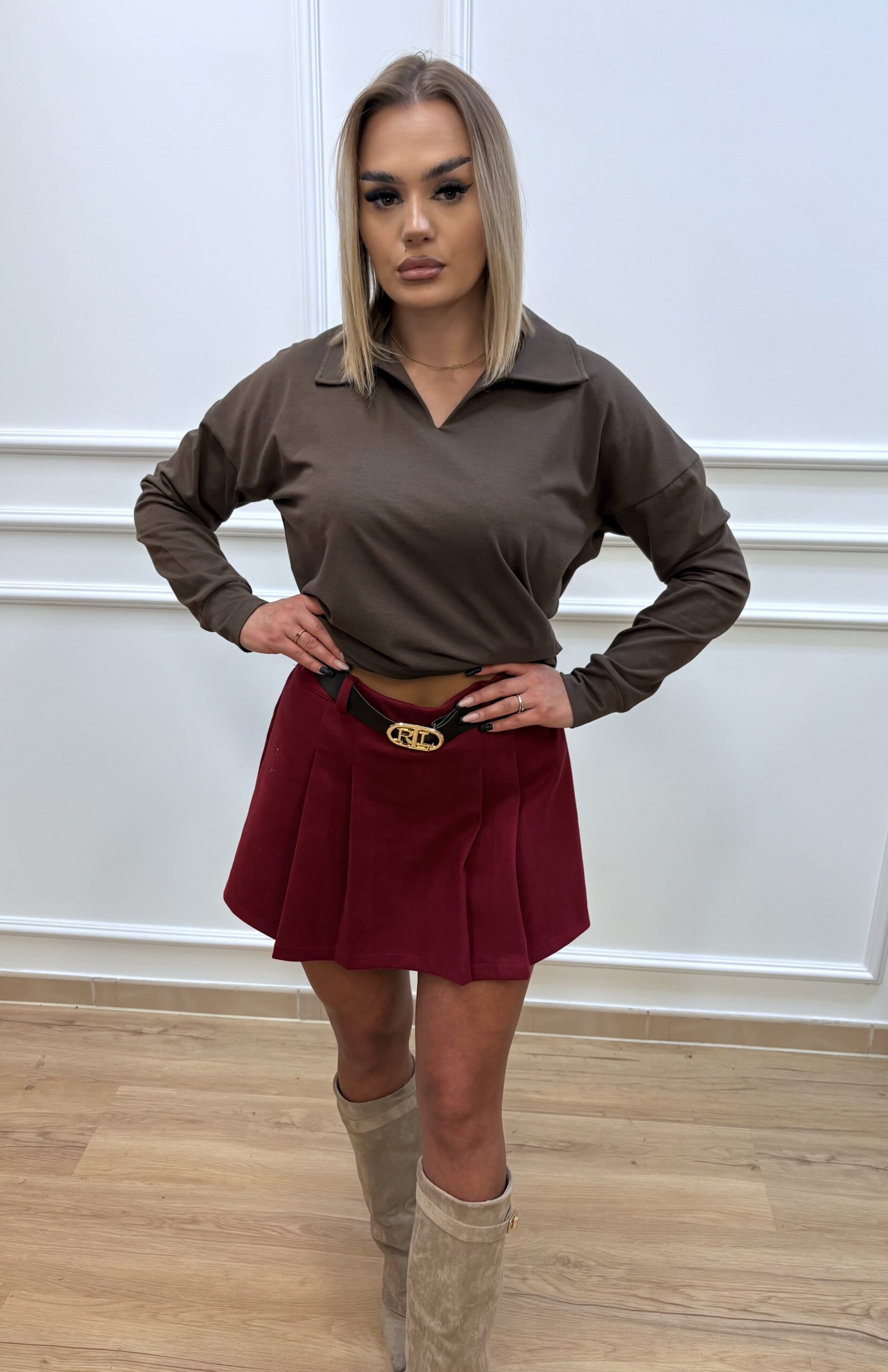 Bluzka damska z kołnierzykiem- brązowa