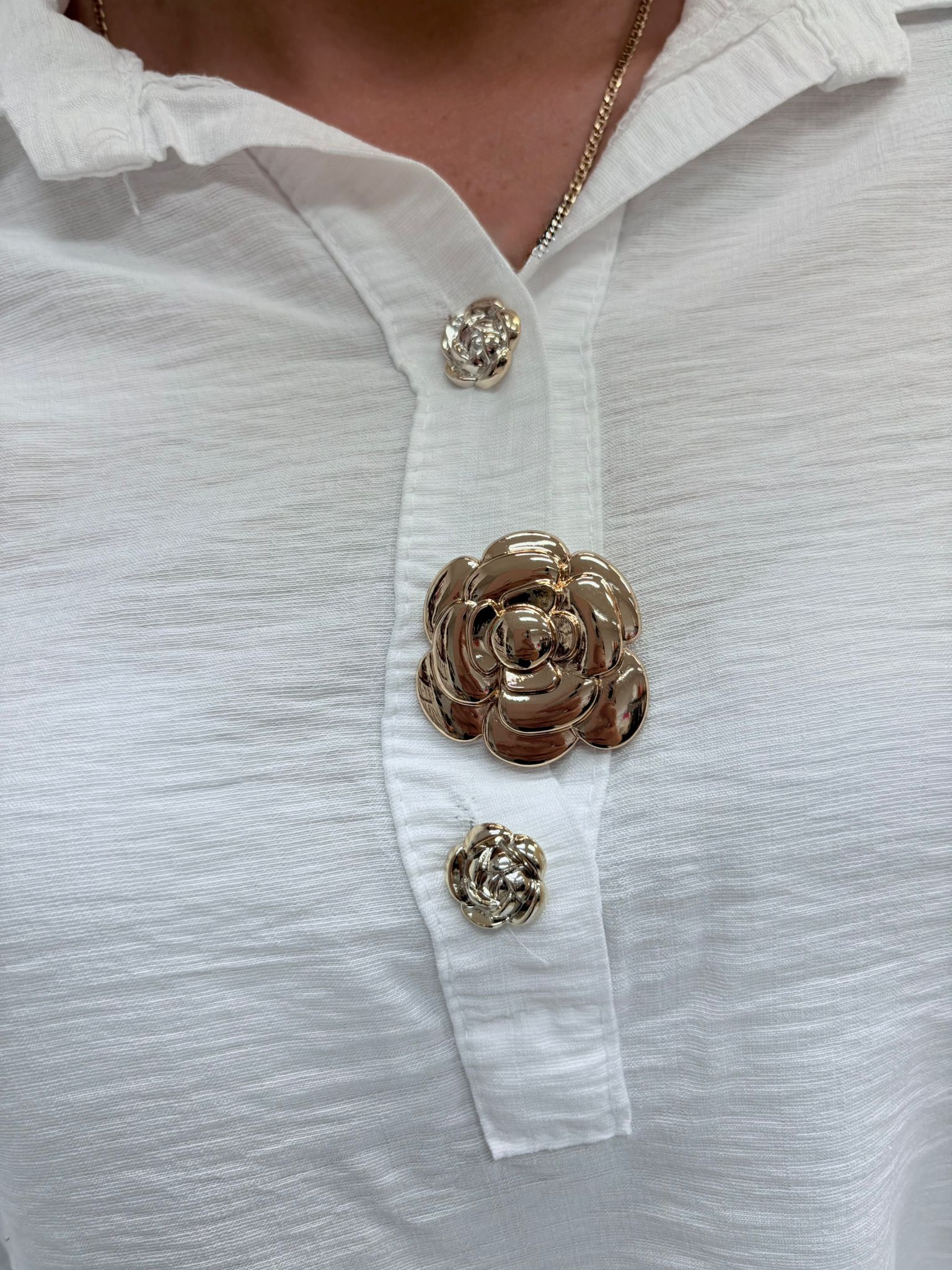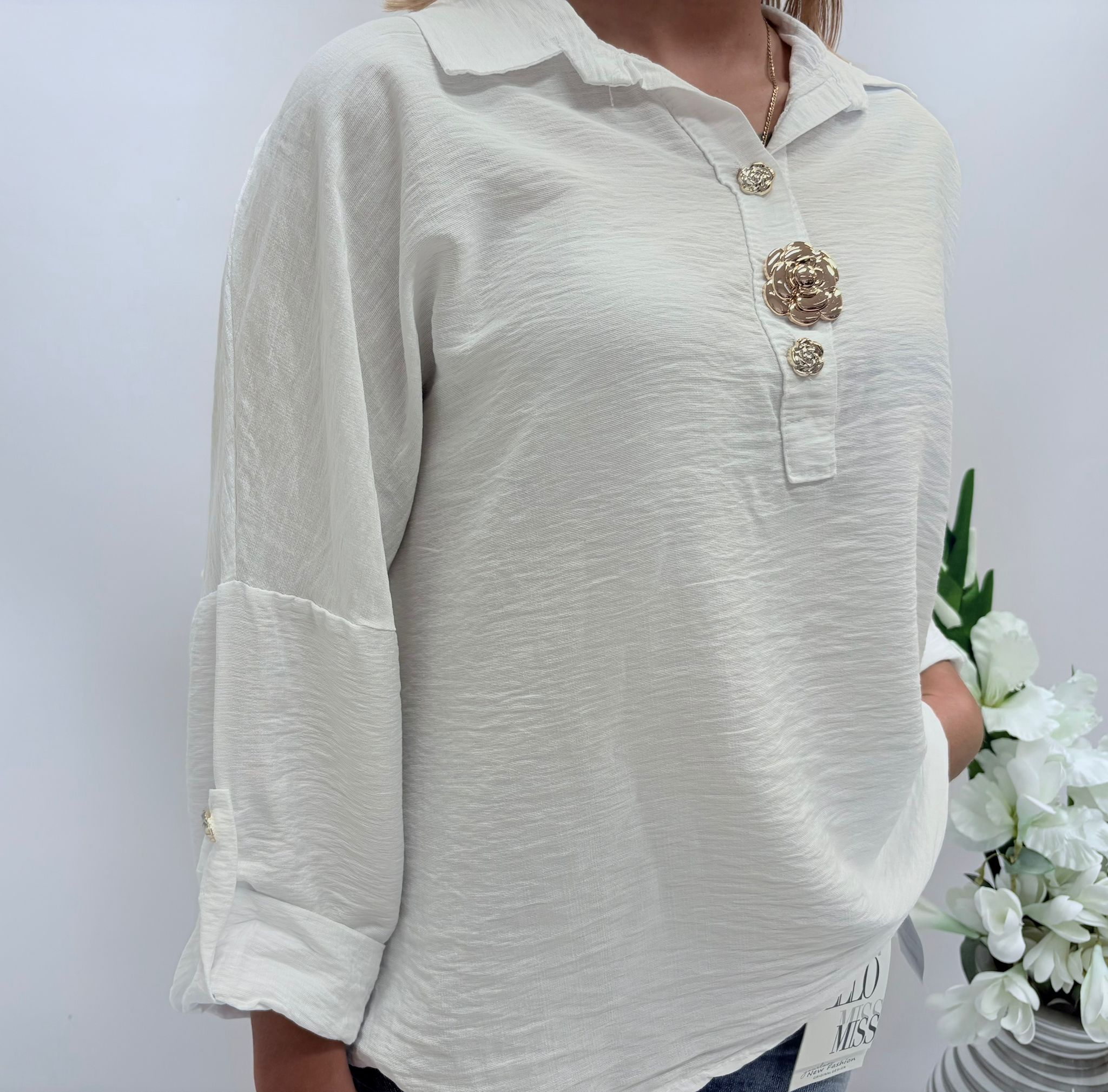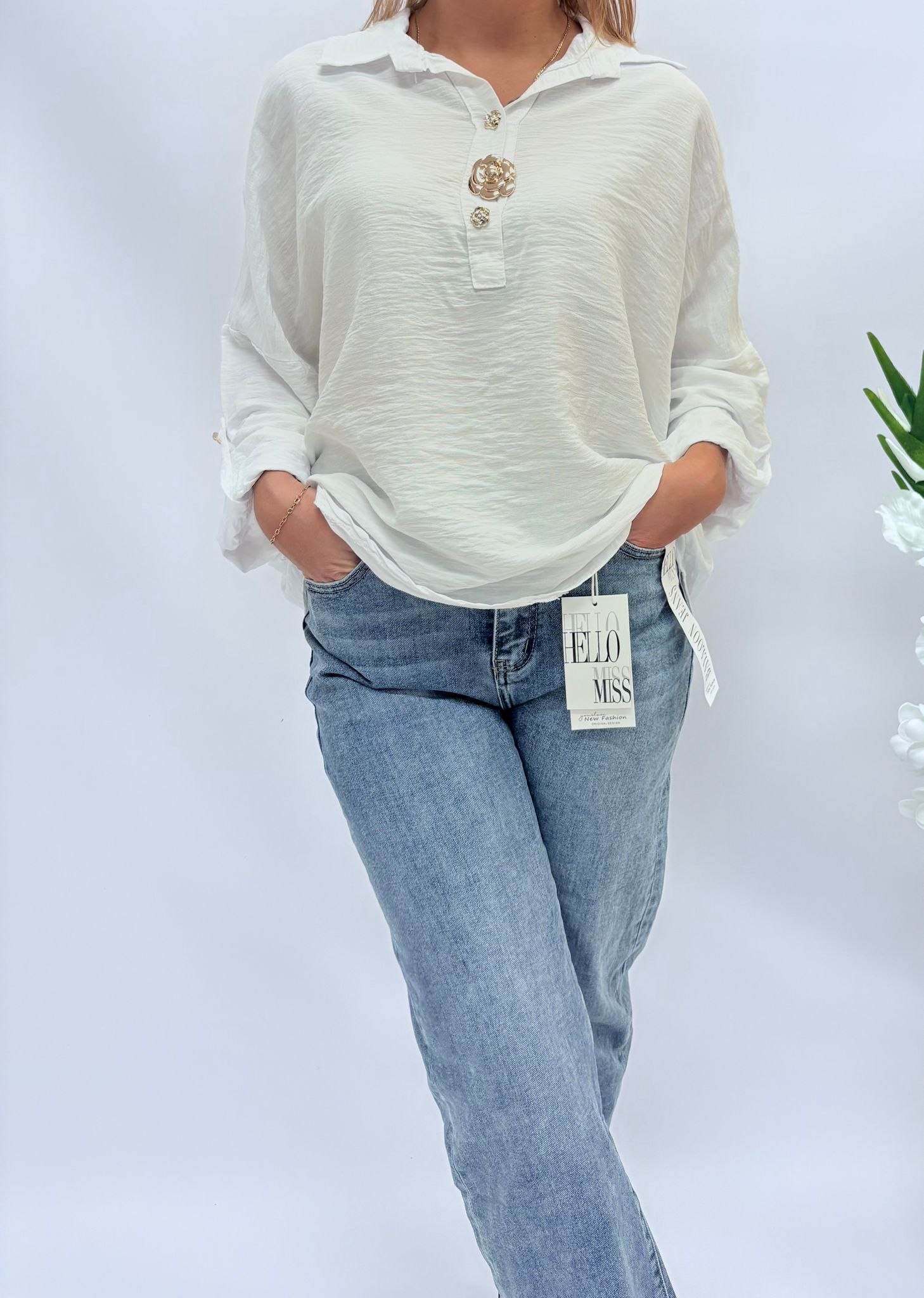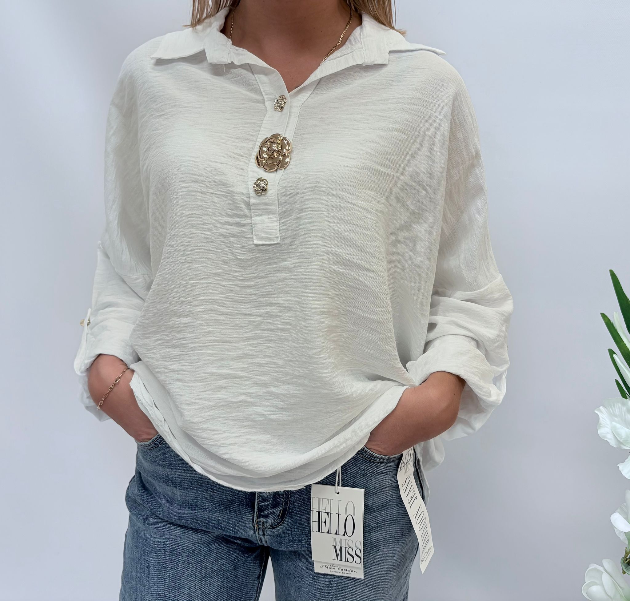 Luźna bluzka z ozdobnymi guzikami – lekka i wygodna o swobodnym kroju, z efektownymi guzikami dodającymi elegancji. Idealna do codziennych i stylowych zestawów.