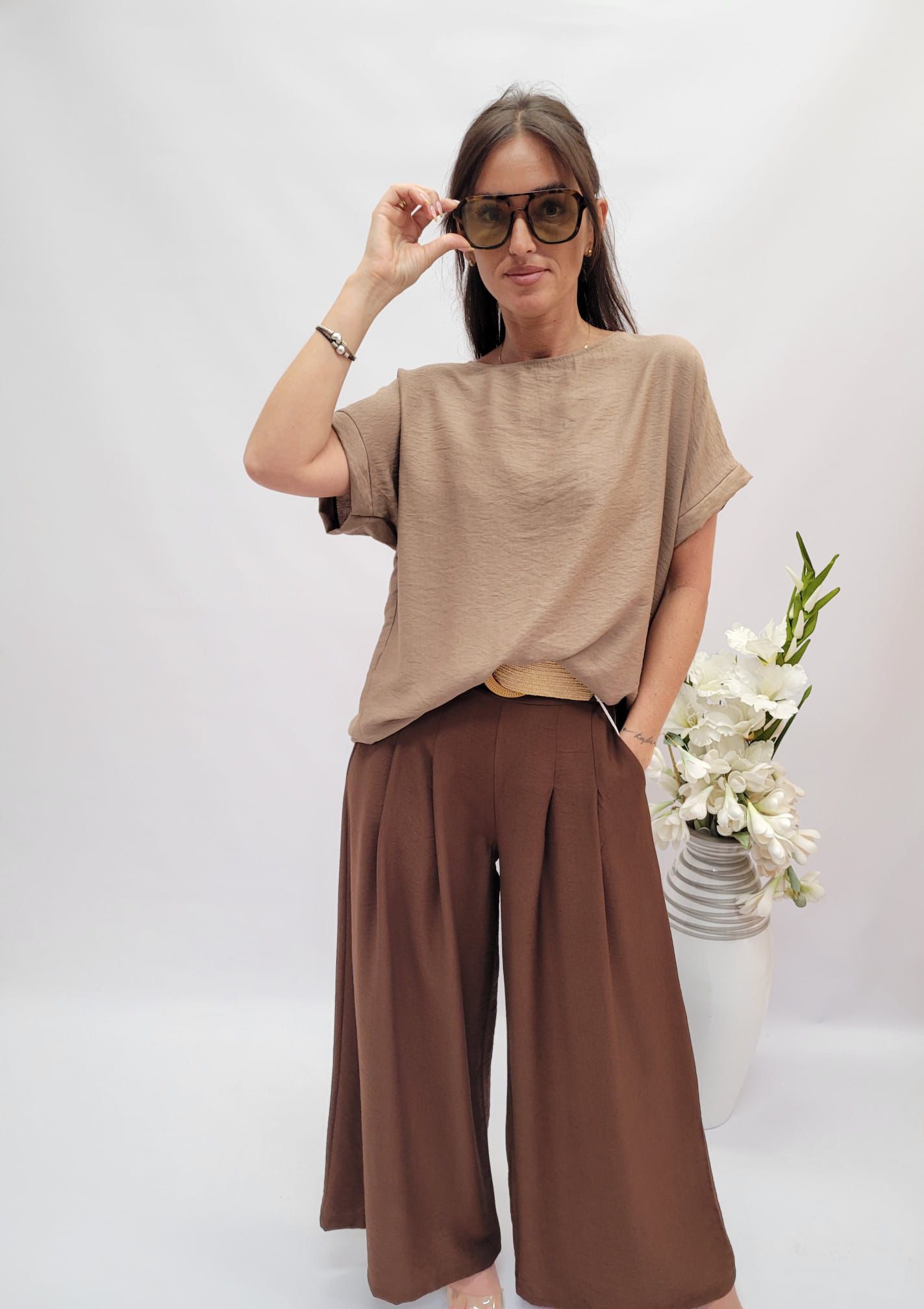 Bluzka z krótkim rękawem cappuccino
