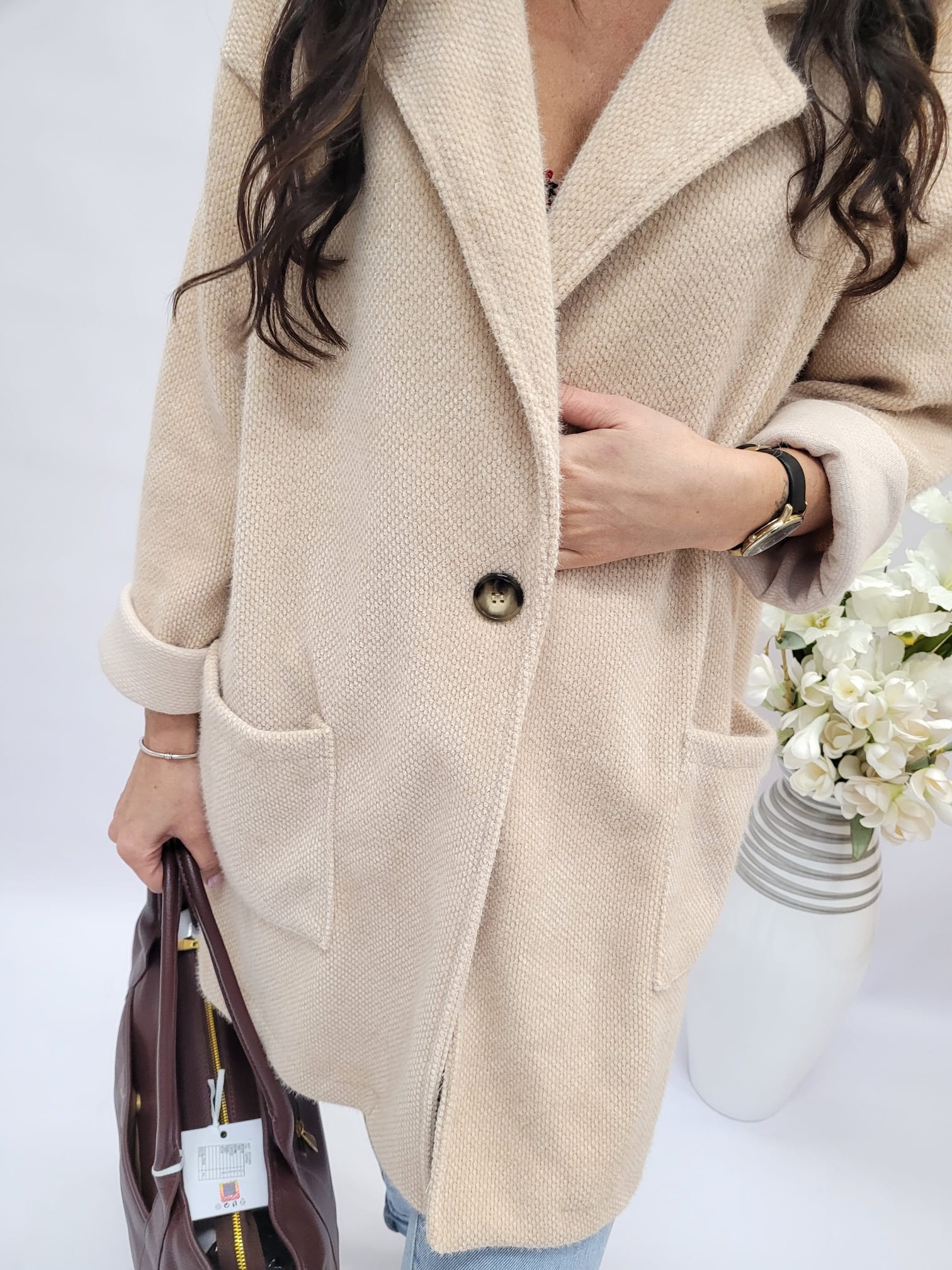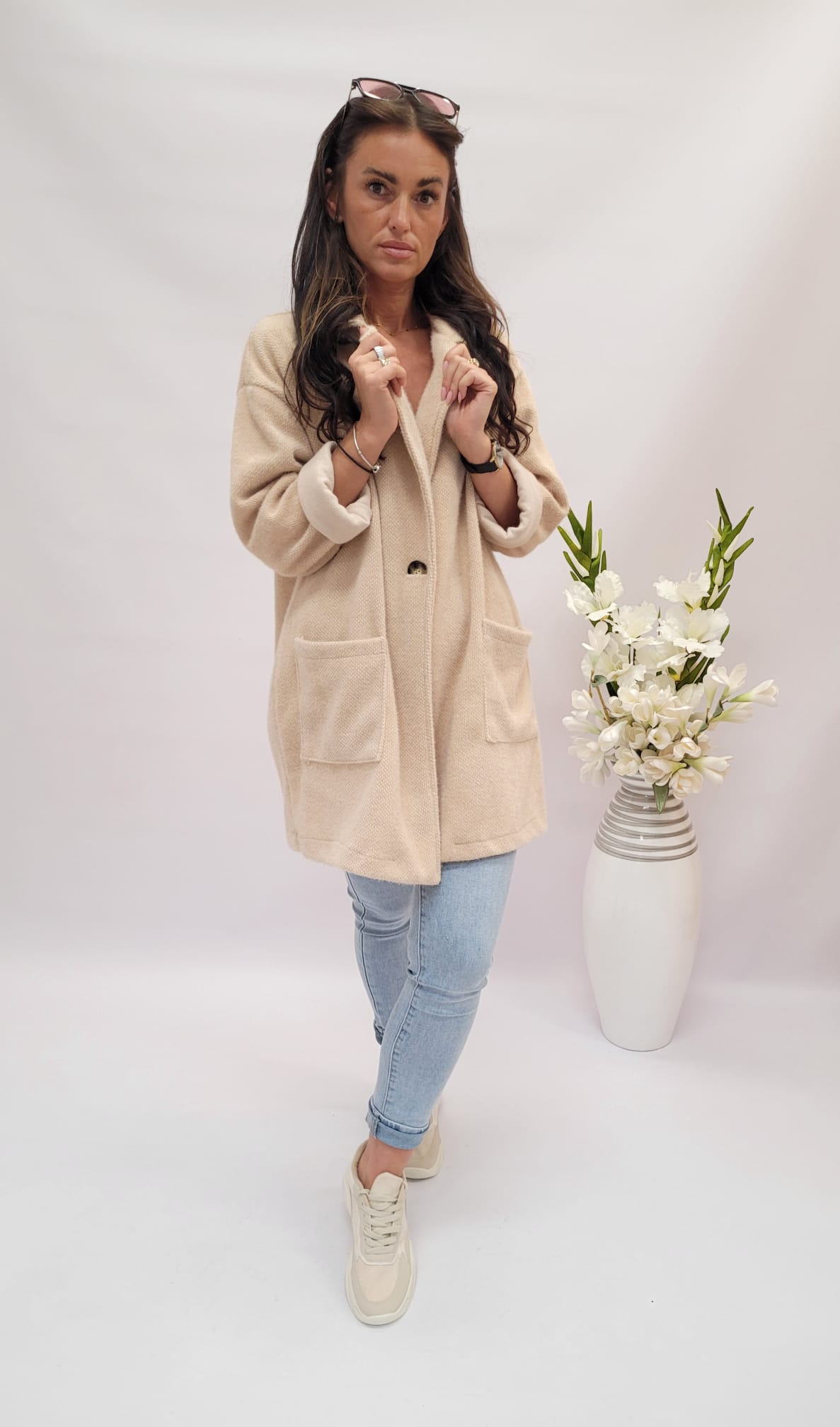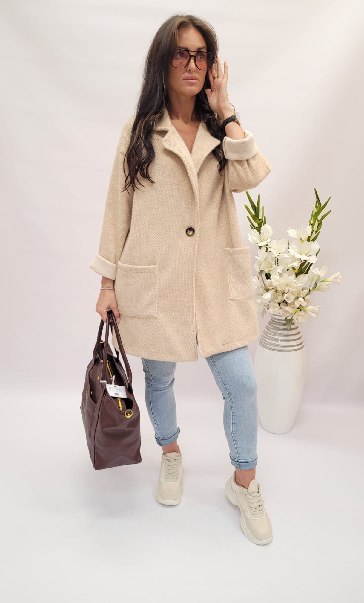 Jesienny płaszczyk na jeden guzik to idealne okrycie wierzchnie na pierwsze chłodne dni. Bardzo lekki i przyjemny w dotyku, otula sylwetkę niczym miękka chmurka, a jednocześnie skutecznie chroni przed porannym chłodem i wieczornym wiatrem . Klasyczny krój zapinany na jeden guzik nadaje mu elegancji i subtelności.