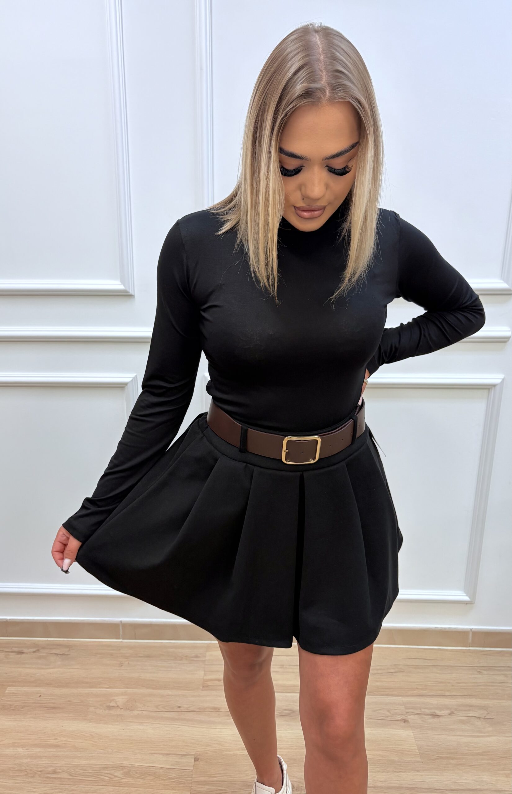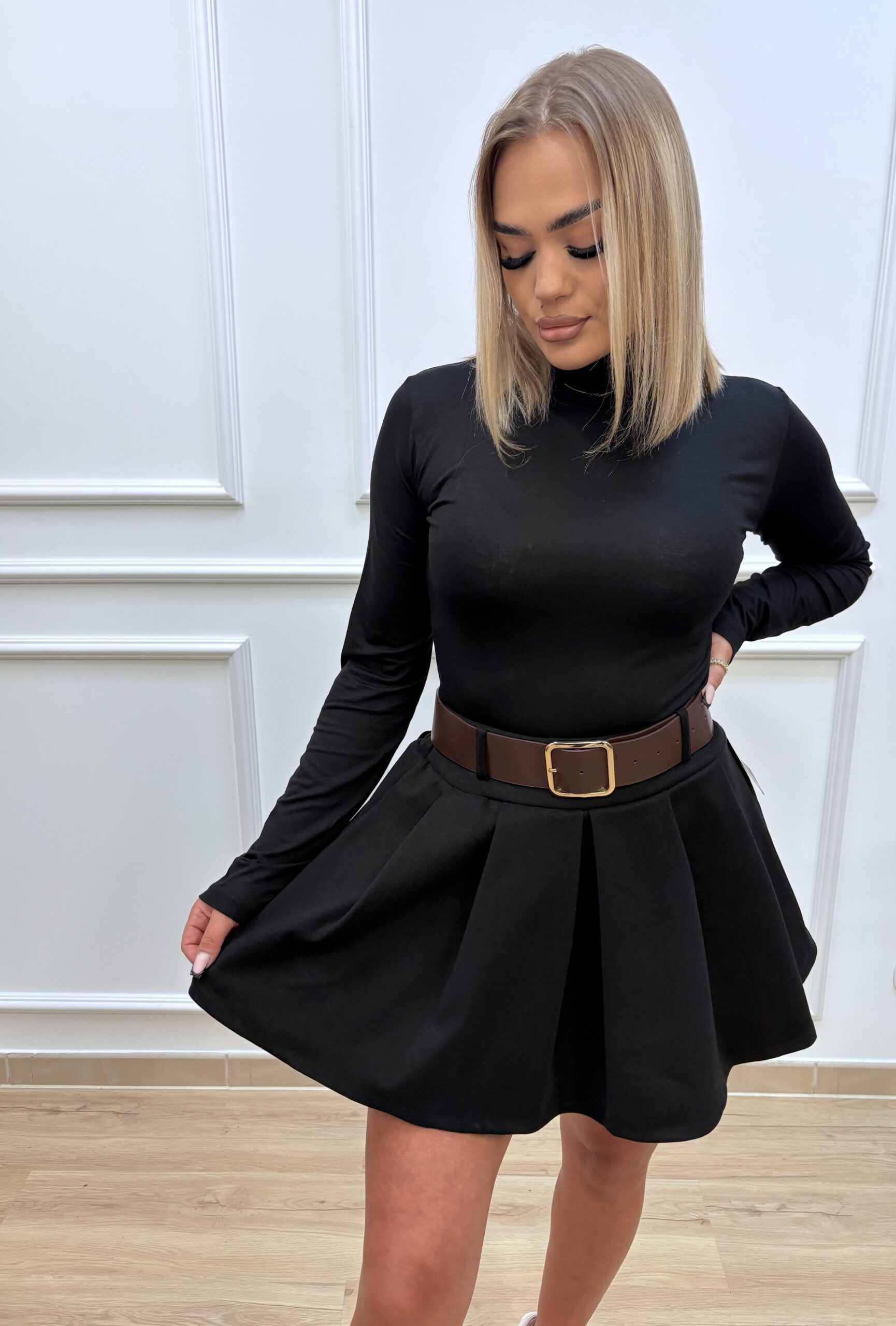 Klasyczny damski golf z marszczoną stójką- czarny