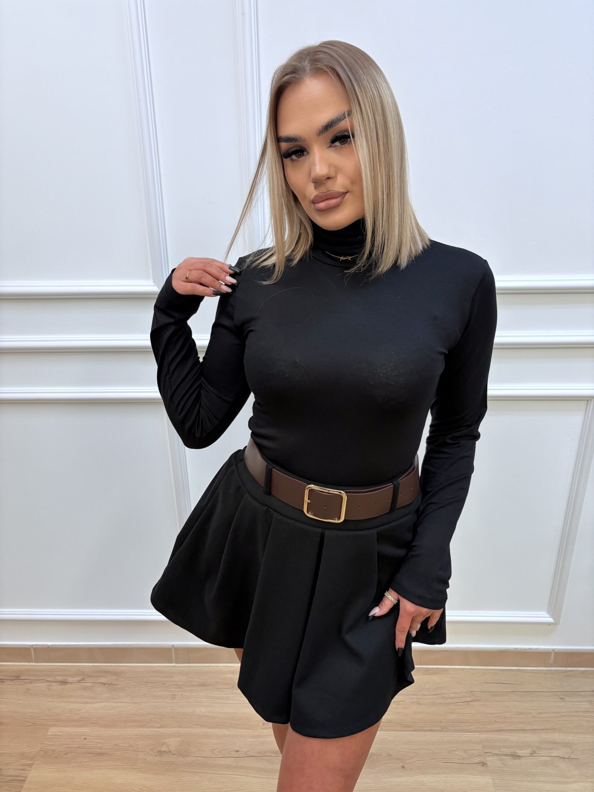 Elegancki i ponadczasowy golf damski wykonany z wysokiej jakości, miękkiej tkaniny. Materiał jest przyjemny w dotyku, elastyczny i pięknie układa się na sylwetce.