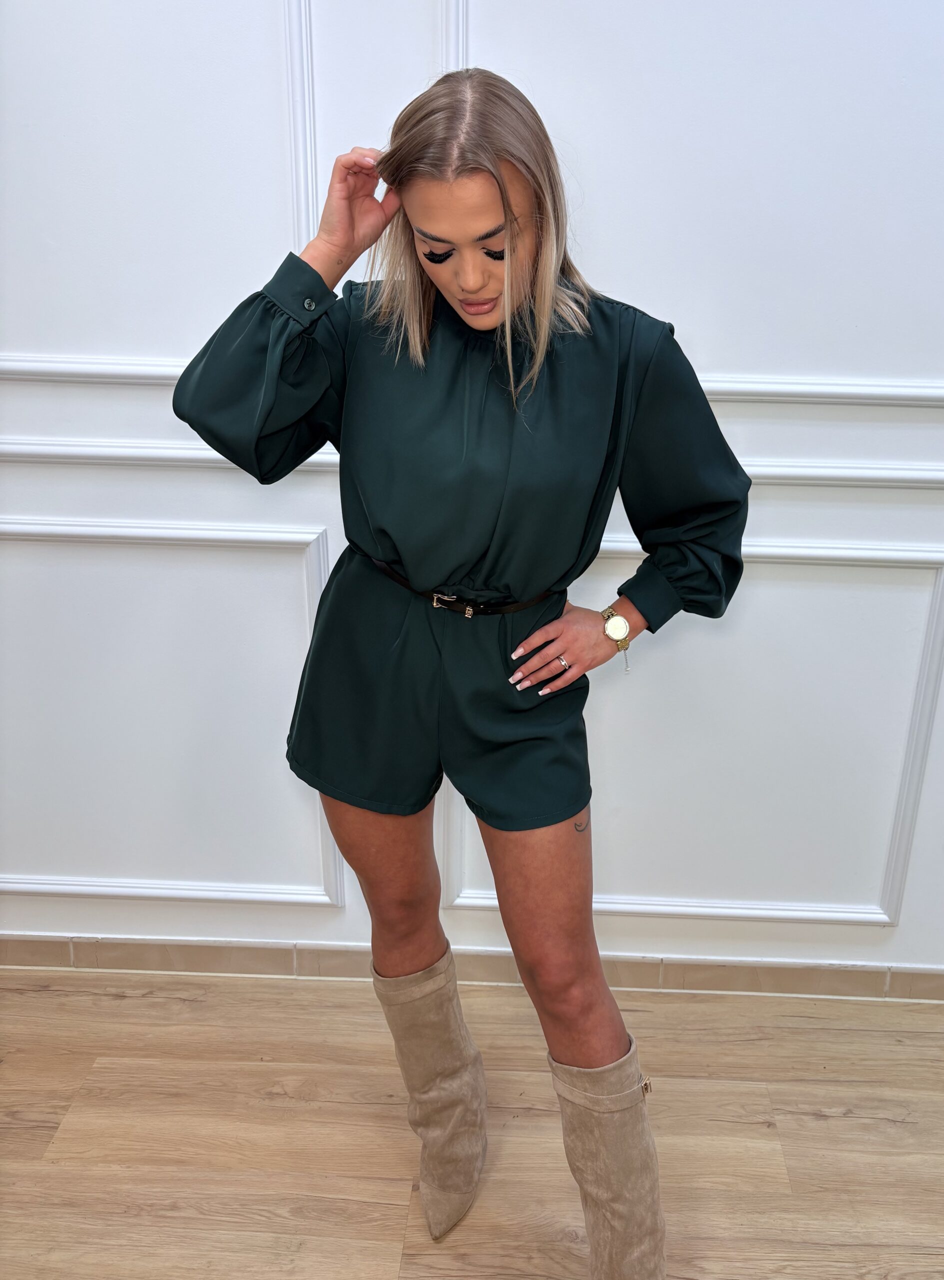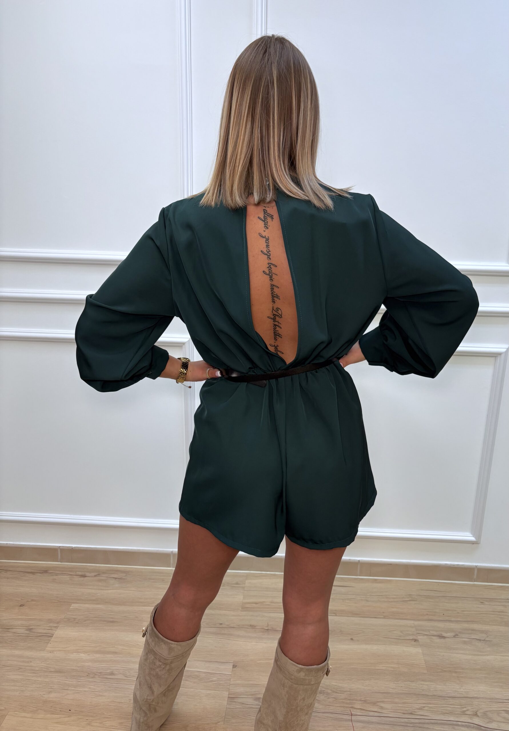 Kombinezon z głębokim wycięciem na plecach- butelkowa zieleń
