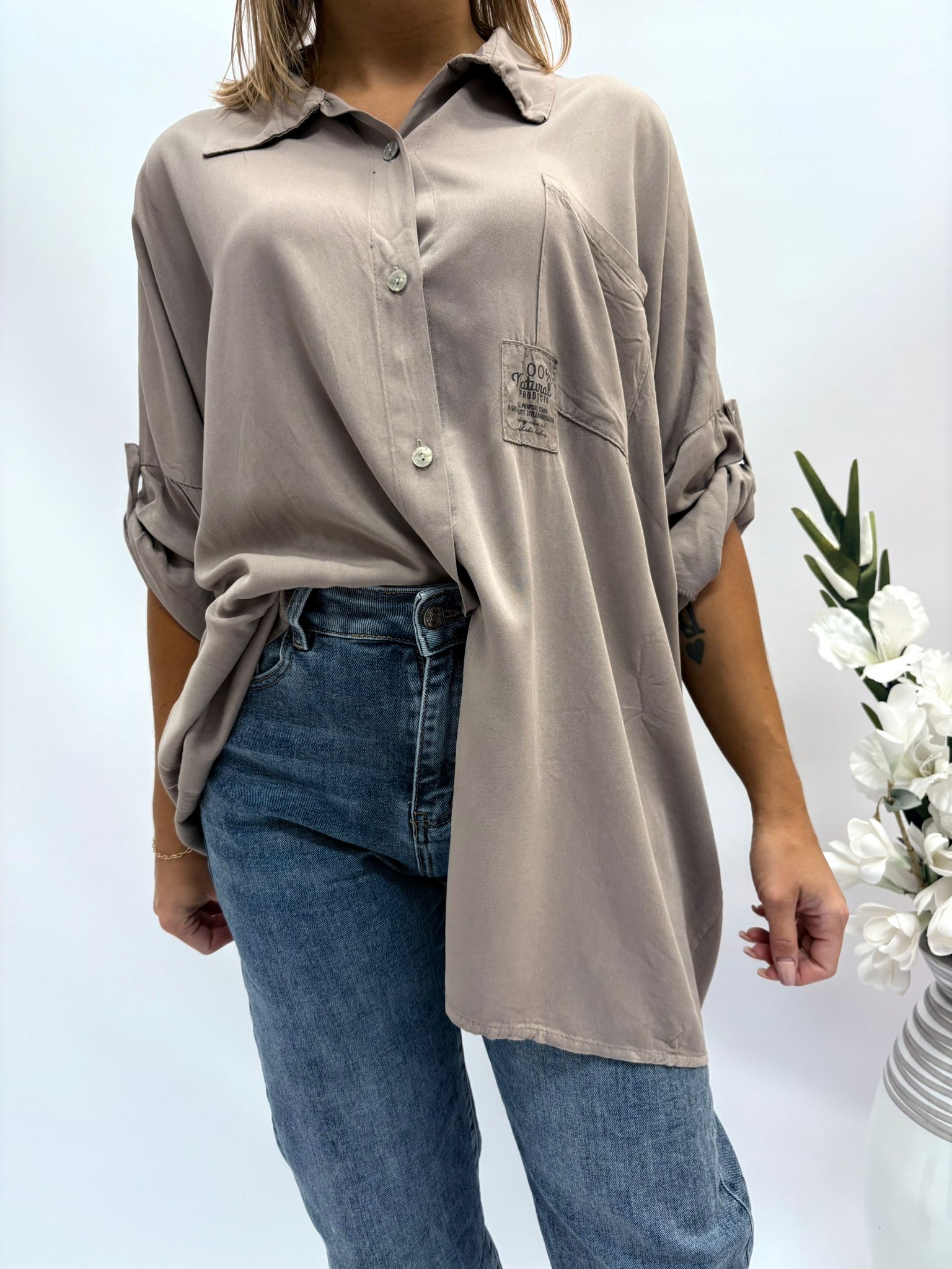Koszula damska luźna z kieszeniom cappuccino
