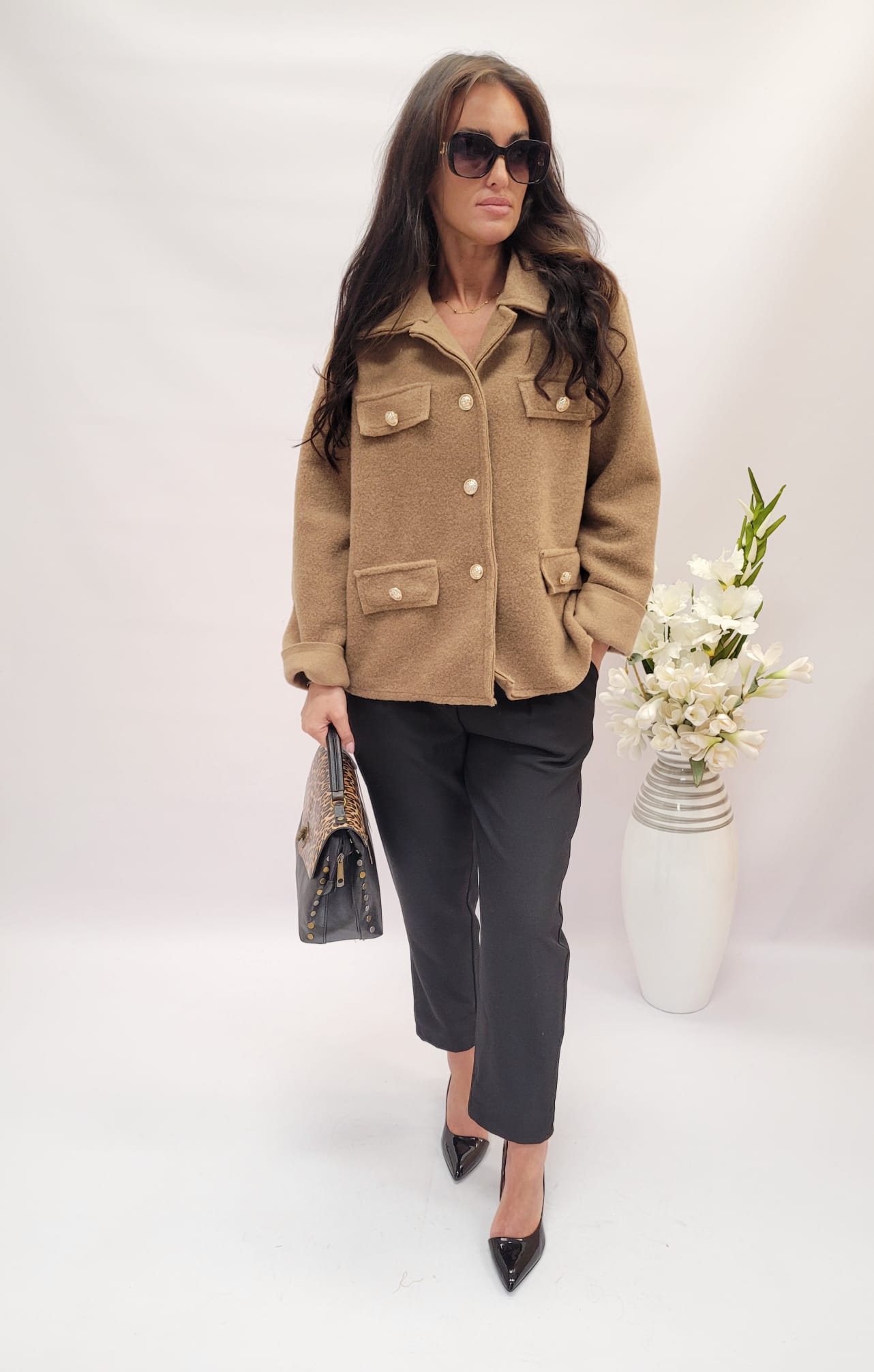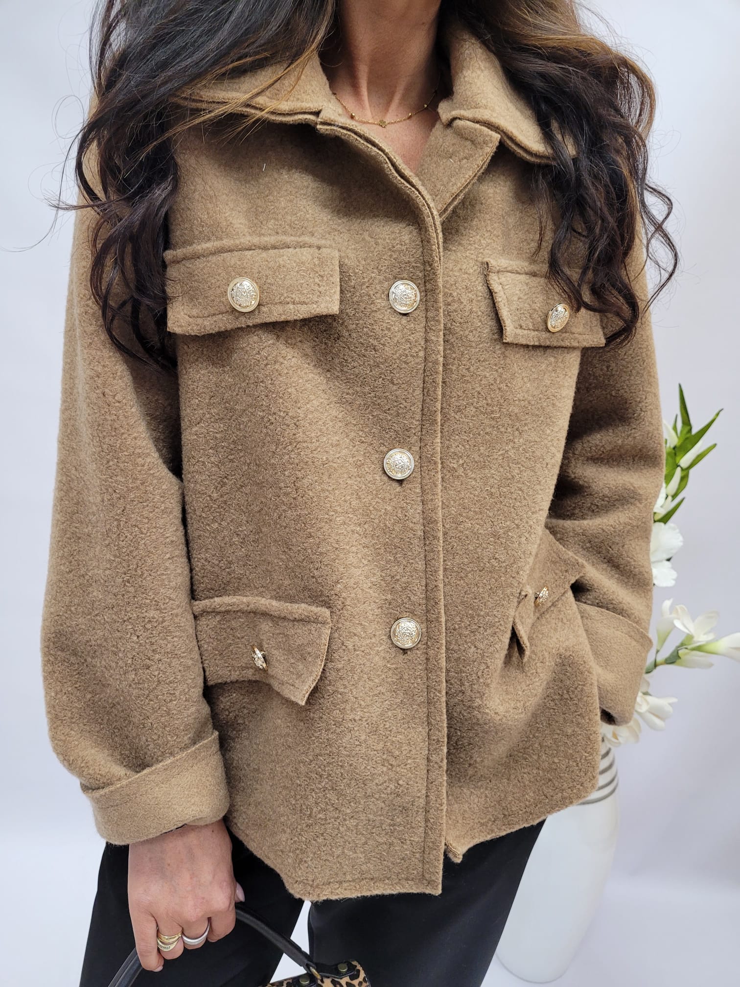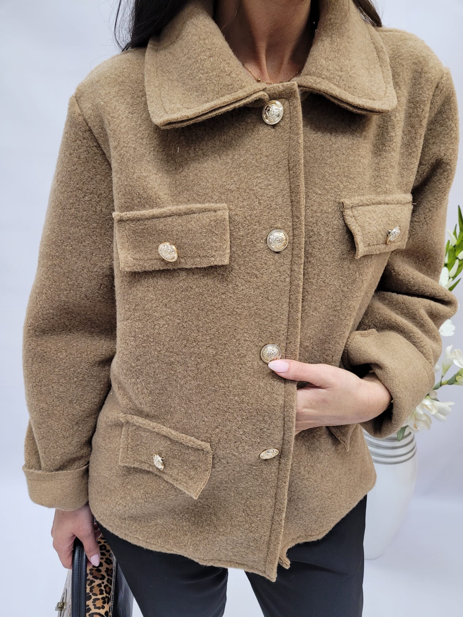 Krótki płaszczyk, który łączy wyjątkowe ciepło z przyjemnością noszenia, to idealna propozycja na chłodne dni. Wykonany z miękkiego, puszystego materiału otula niczym koc, zapewniając komfort i ochronę przed zimnem.