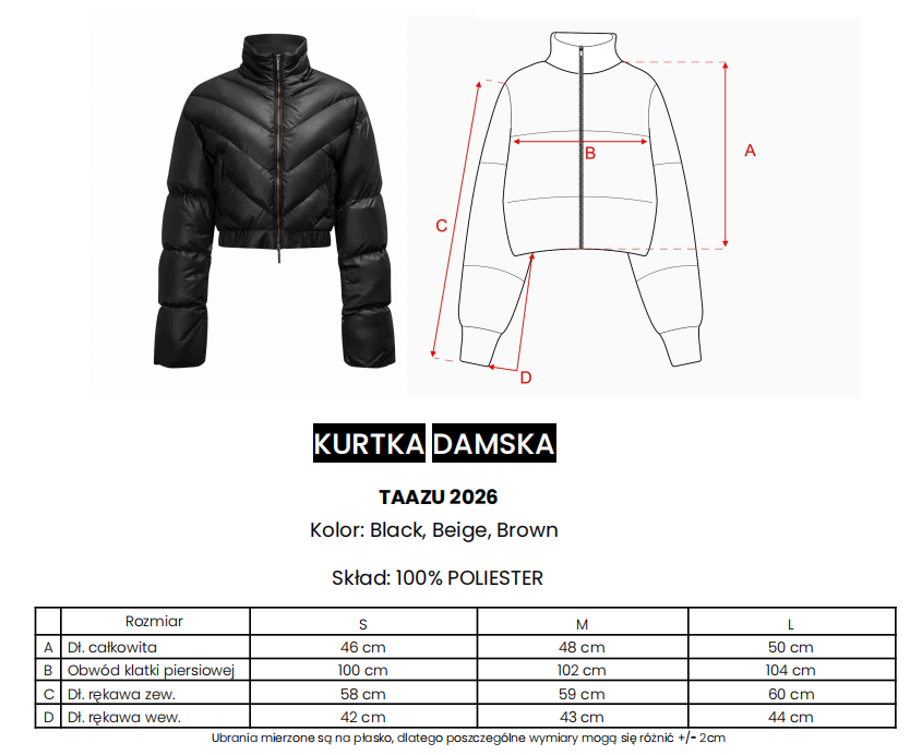 Pikowana kurtka o nowoczesnym, lekko skróconym kroju. Model wykonany z gładkiej, lekko połyskującej tkaniny. Kurtka zapinana na solidny, złoty zamek z logo marki OLAVOGA. Model z wysoką stójką. Brzegi zakończone elastycznym wykończeniem. Na tyle umieszczone subtelne, złote logo marki OLAVOGA. Kurtka posiada praktyczne kieszenie zapinane na zamek.