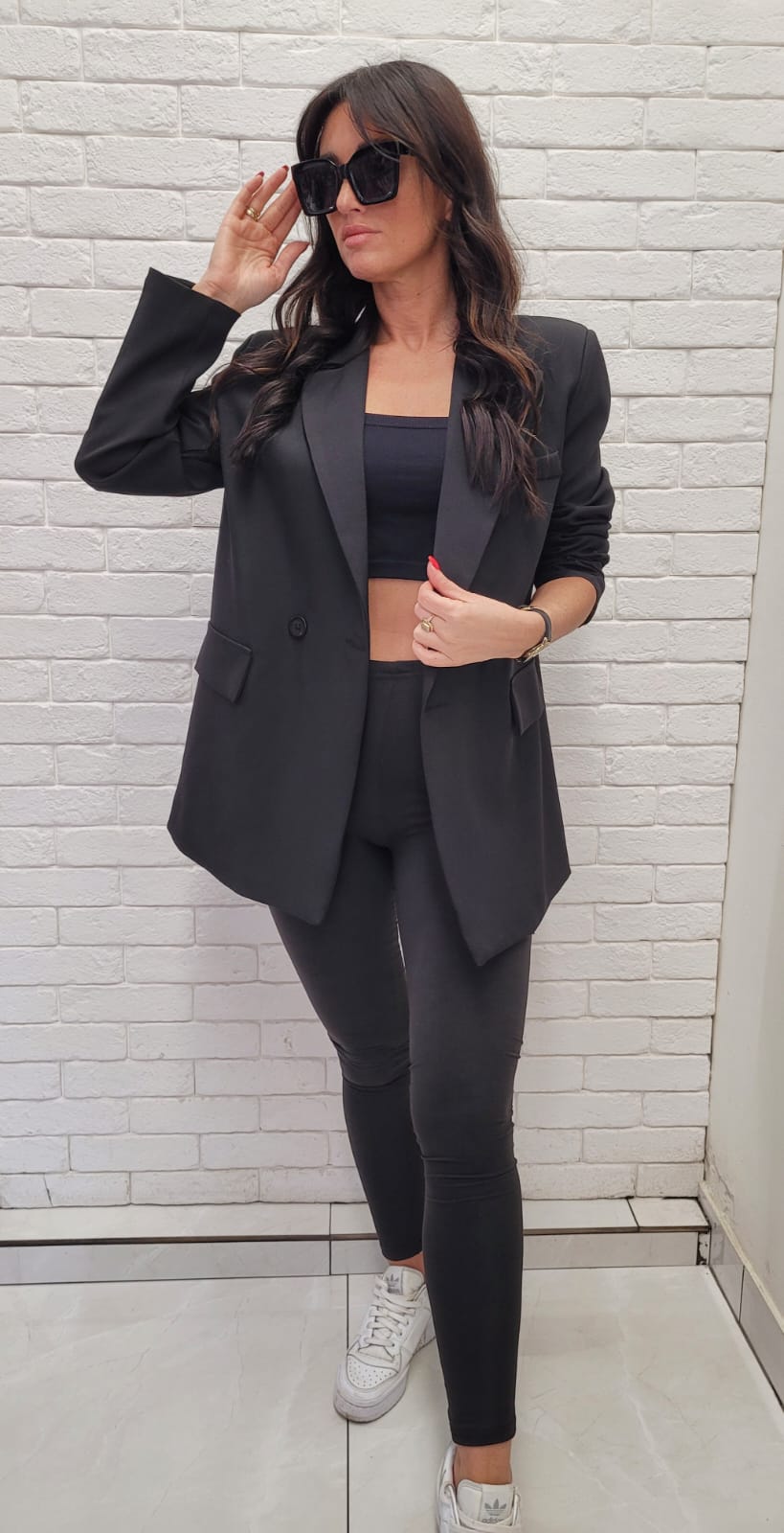 Czarna marynarka to klasyka, która nigdy nie wychodzi z mody. Luźny krój zapinany na jeden guzik pozwala na swobodę i wygodę w każdej sytuacji. Elegancki kolor i prosty fason czynią ją doskonałym wyborem zarówno do pracy, jak i na wieczorne wyjście.