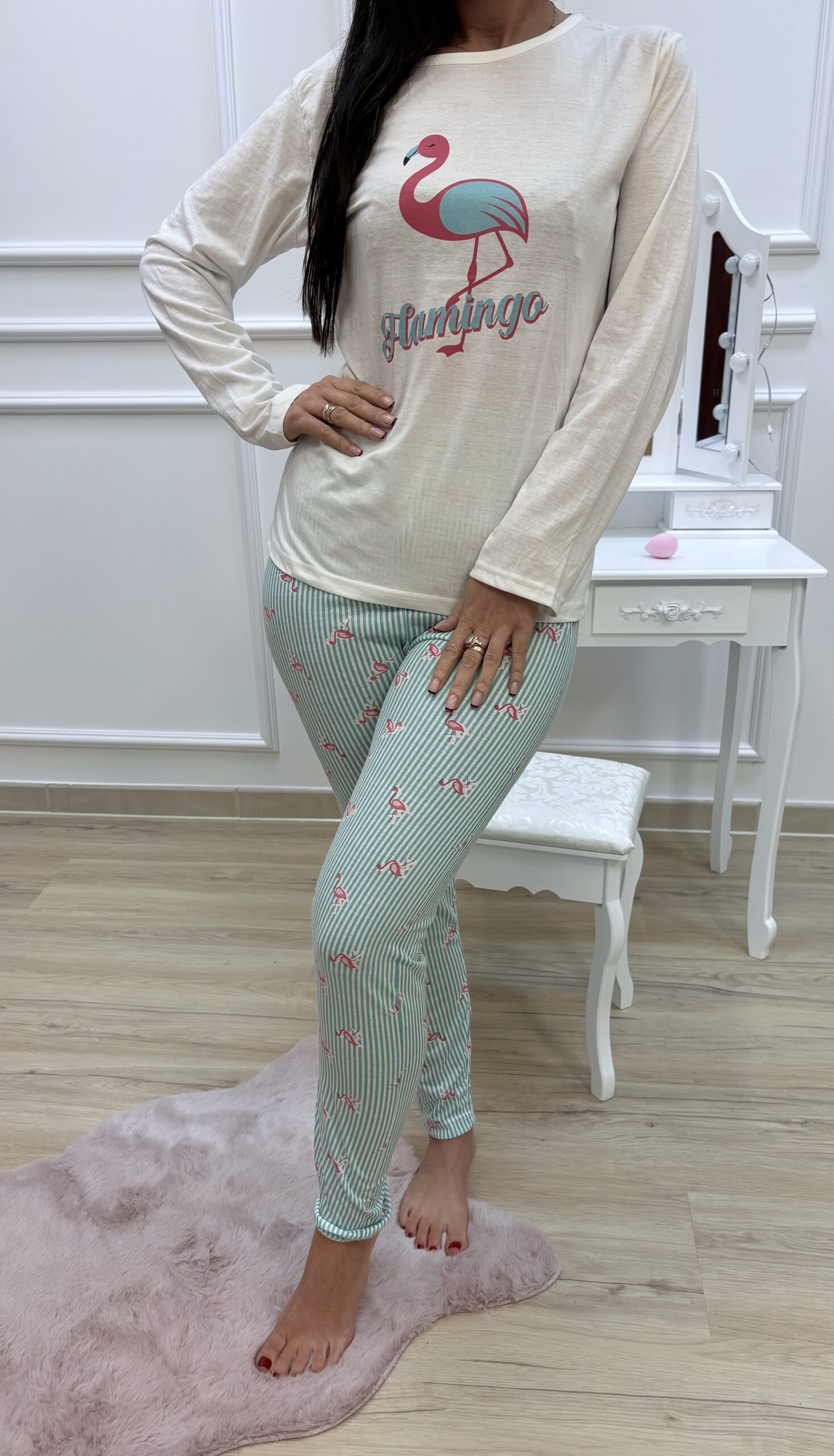 Piżama damska długi rękaw biała