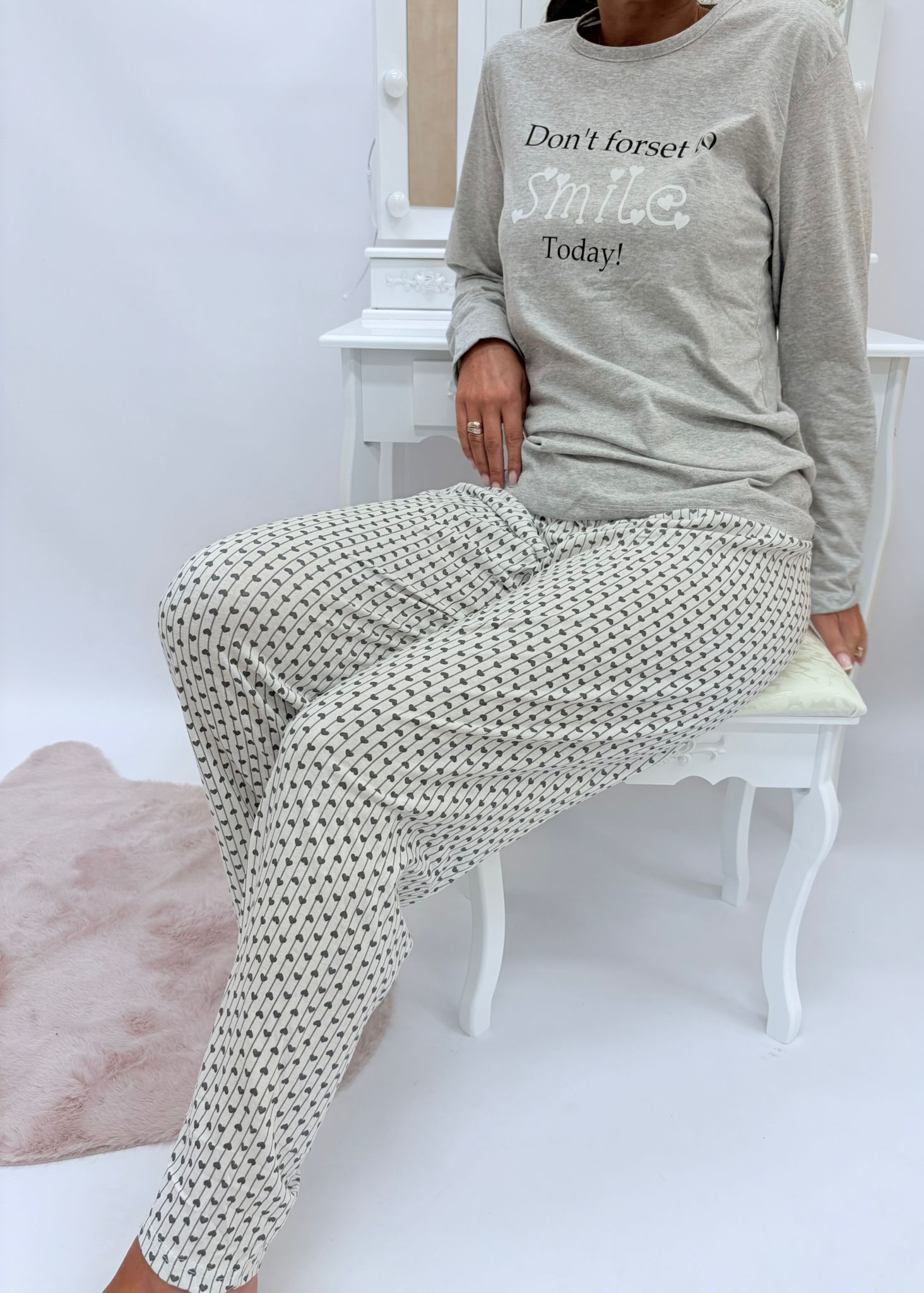 Piżama damska długi rękaw szara