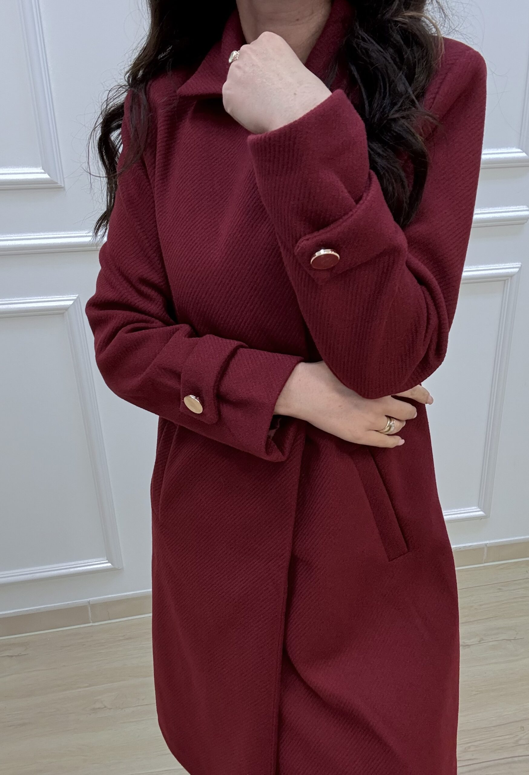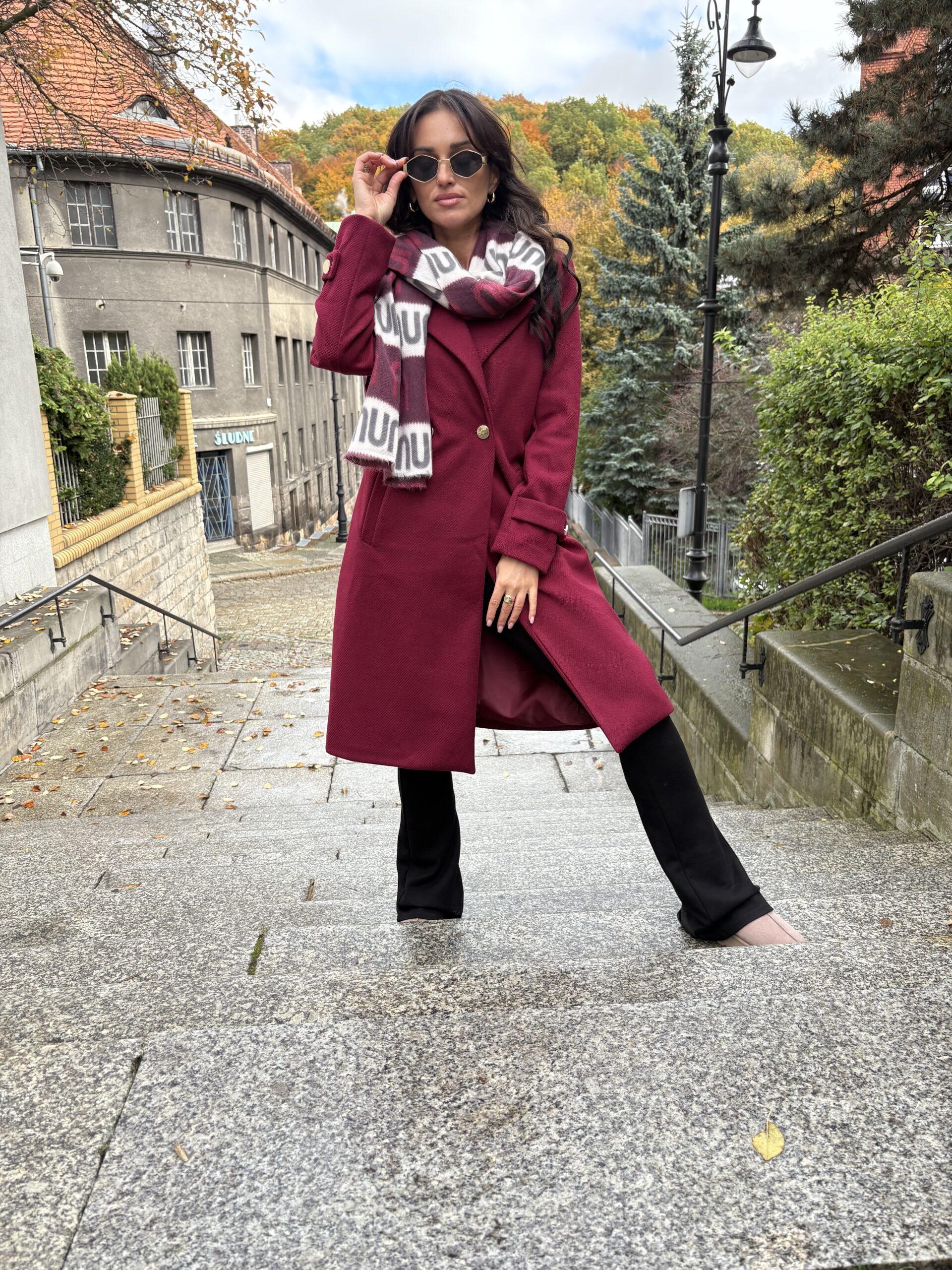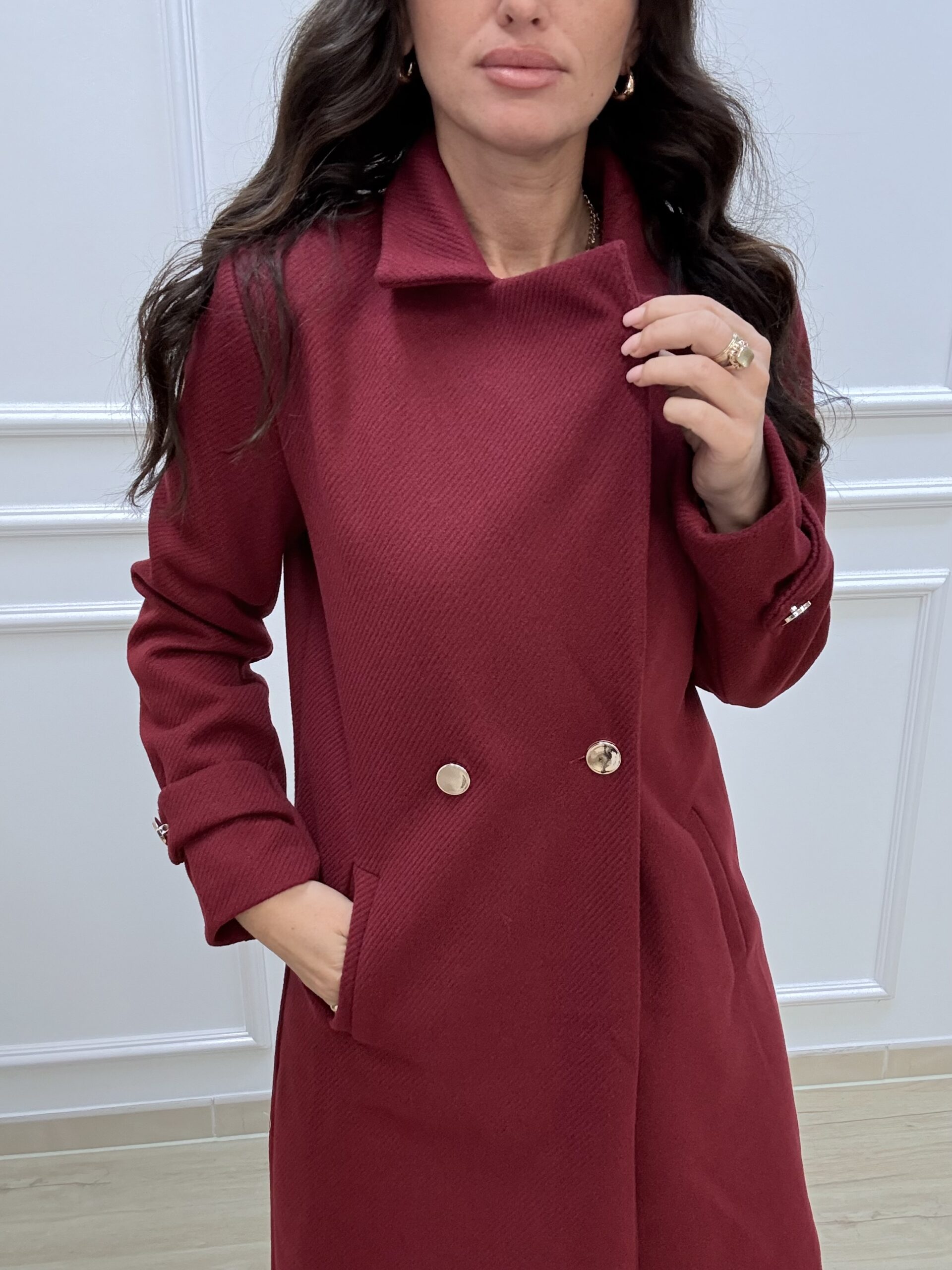 Stylowy i kobiecy płaszcz damski zapinany na złoty guzik, który dodaje całości wyjątkowej elegancji. Przy rękawach znajdują się ozdobne złote guziki, subtelnie podkreślające, subtelnie podkreślające szykowny charakter modelu. Płaszcz posiada praktyczne kieszonki, idealne na drobiazgi lub ogrzanie dłoni w chłodniejsze dni.