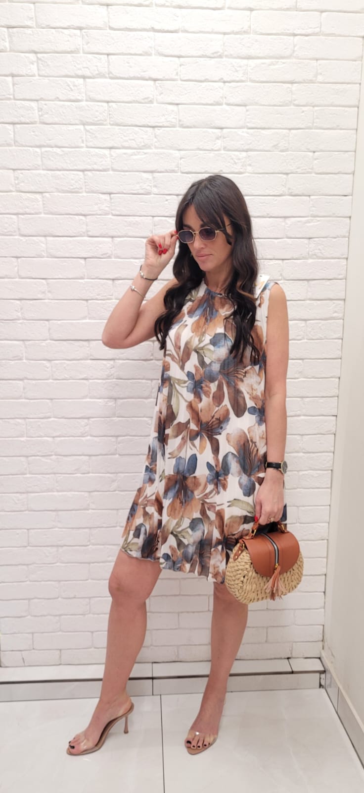 Plisowana sukienka w kwiaty brąz