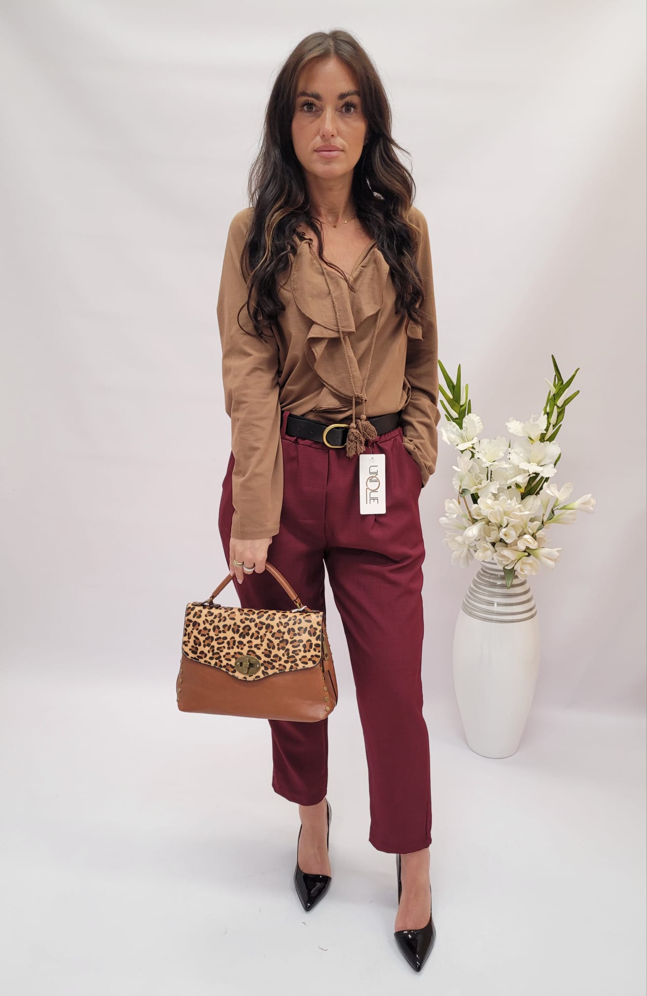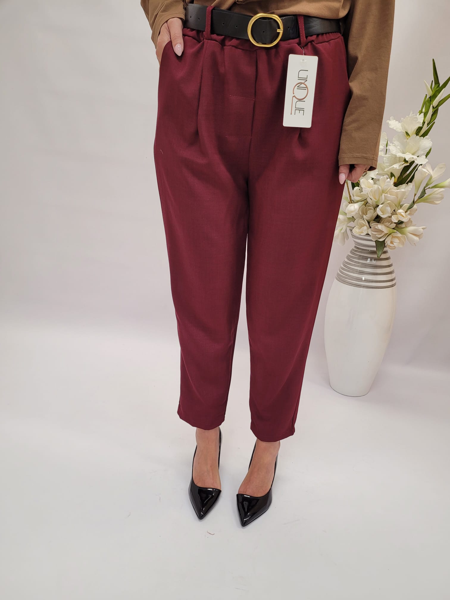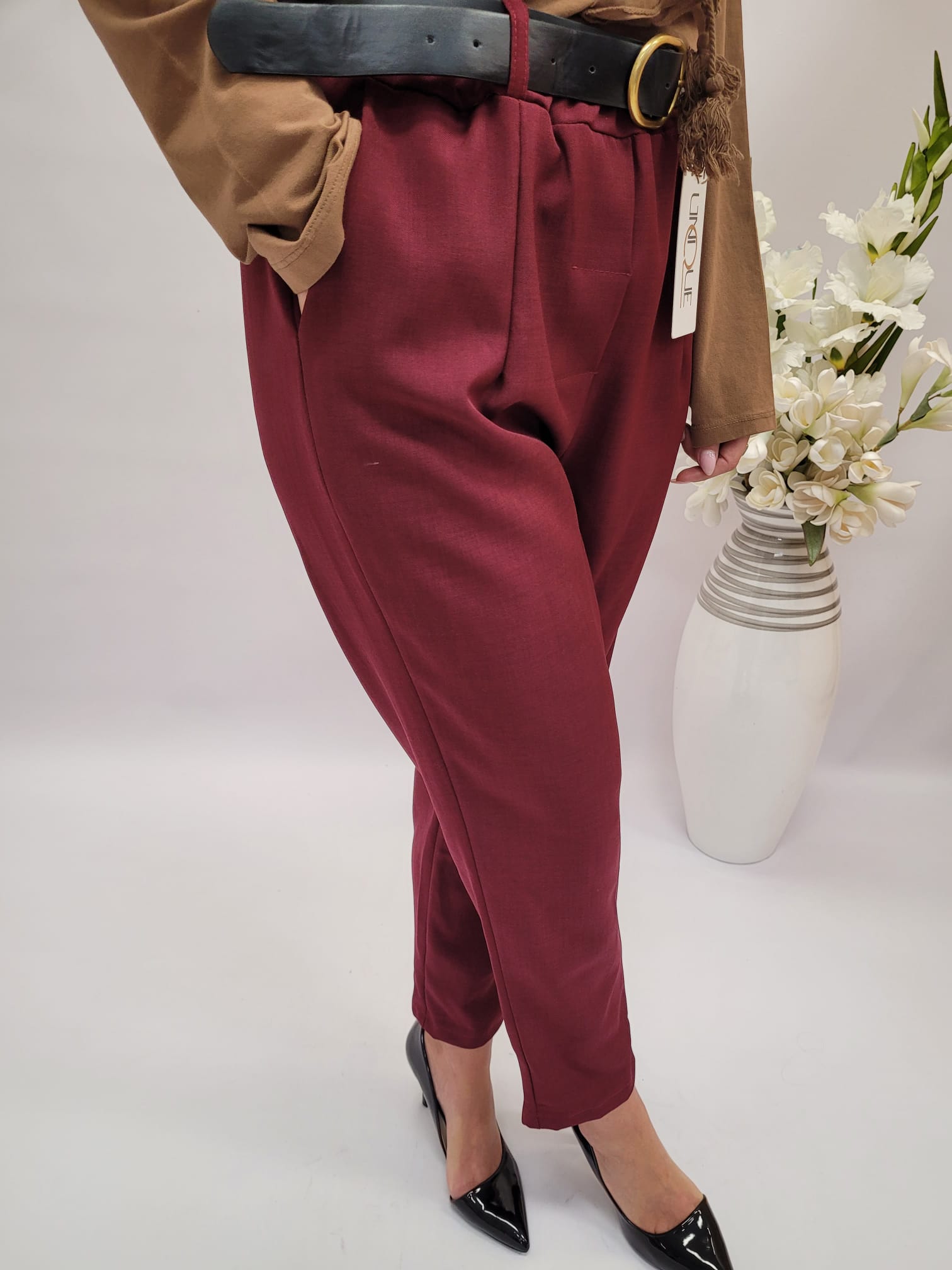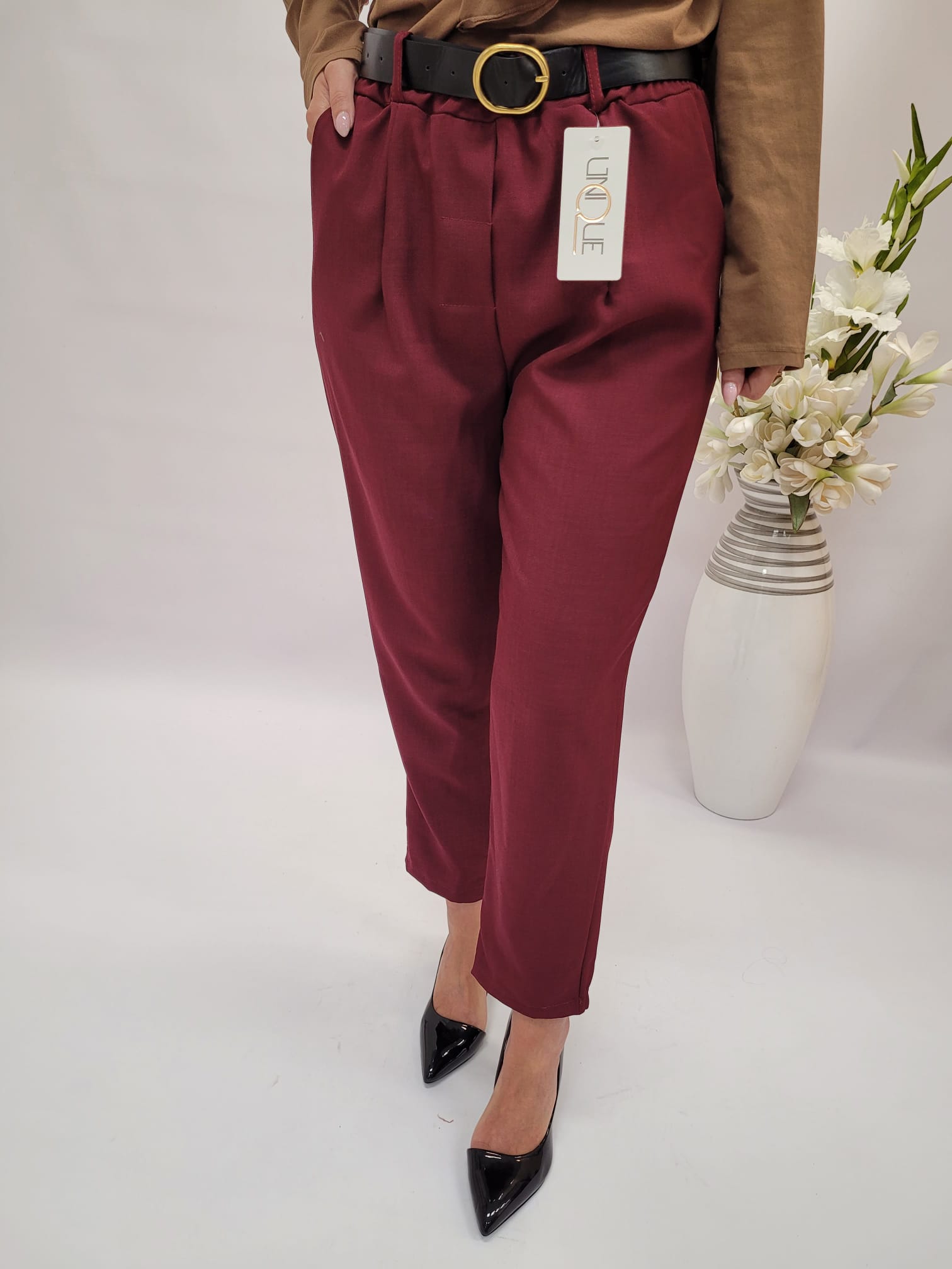 Spodnie długi cygaretki bordo
