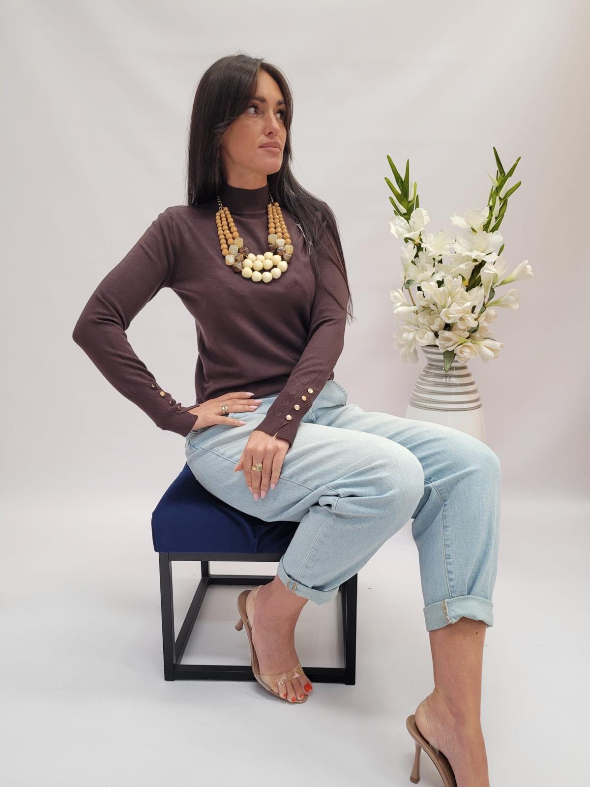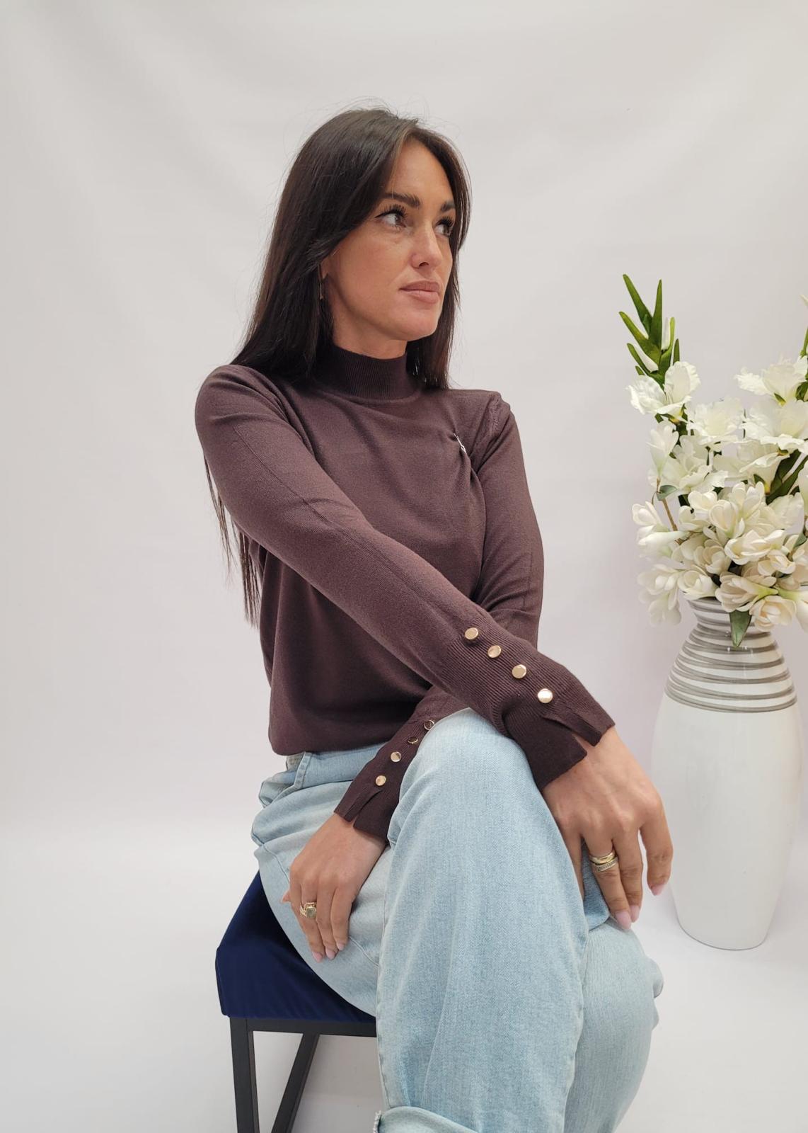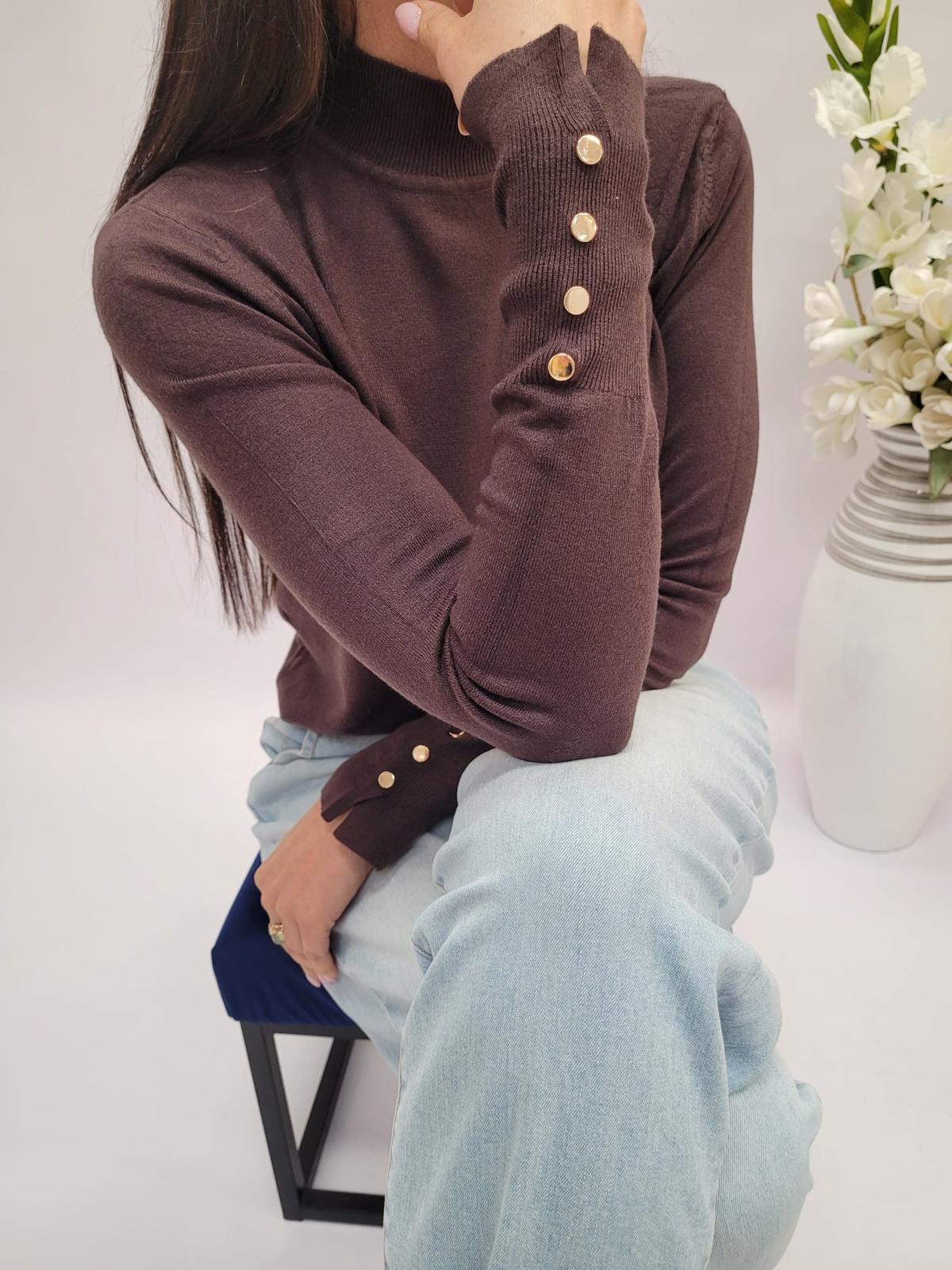 Cienki półgolf wykonany z wyjątkowo miękkiego i delikatnego materiału, który przyjemnie otula skórę. Klasyczny fason z subtelnie podkreśloną szyją sprawia, że świetnie sprawdzi się zarówno na co dzień jaki i w eleganckich stylizacjach. Ozdobne guziki na mankiecie dodają stylowego charakteru i przyciągają wzrok.