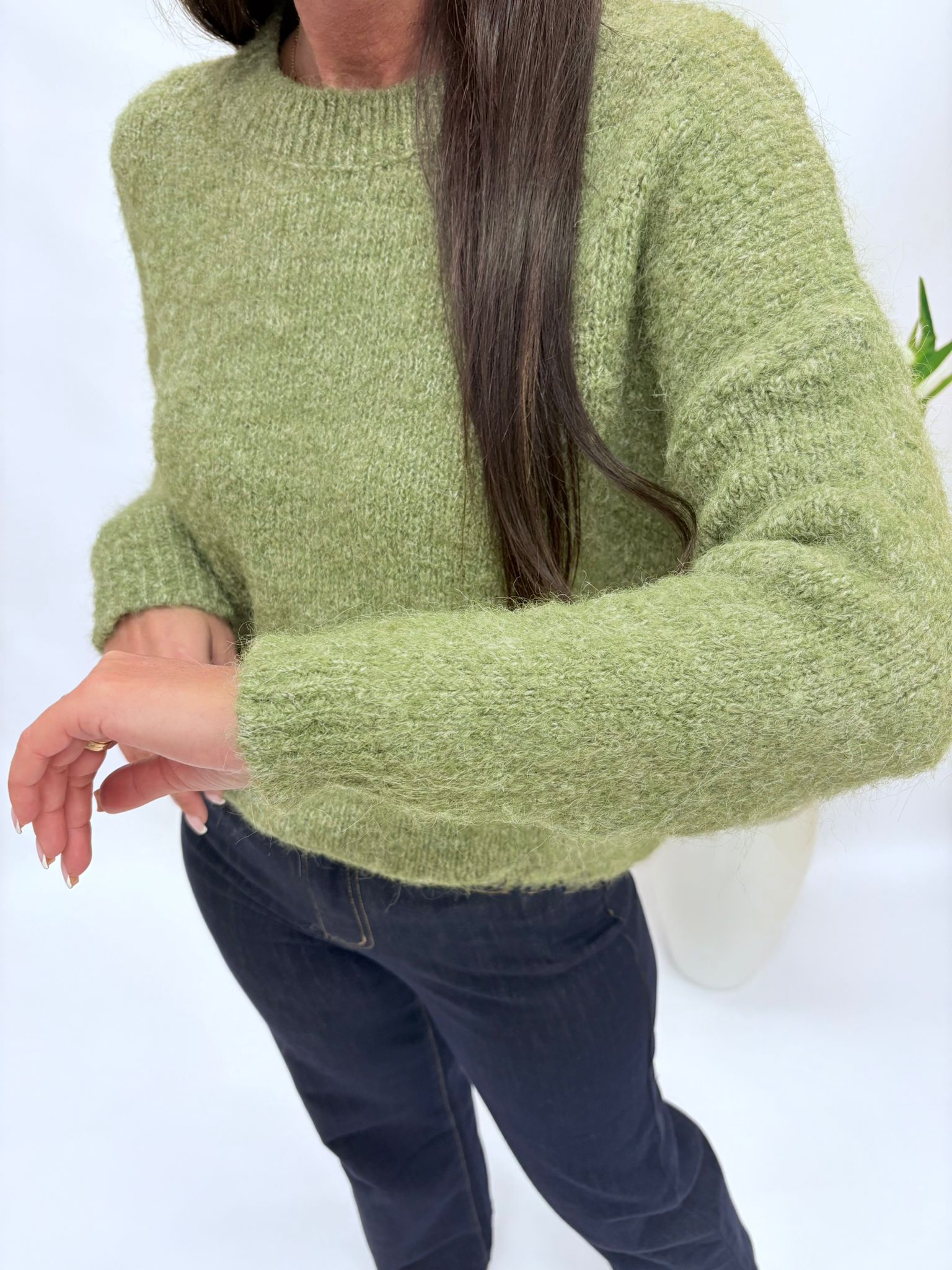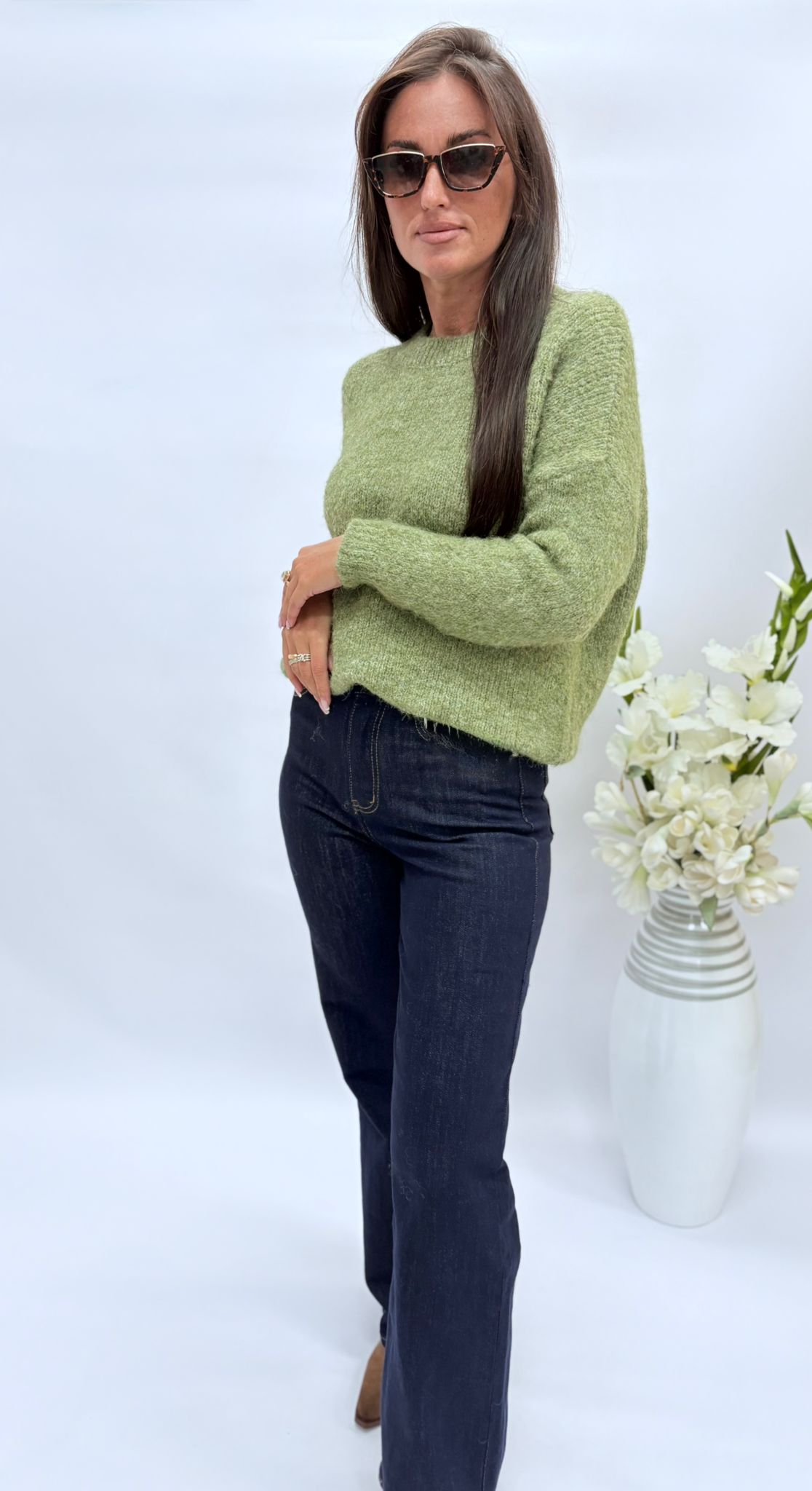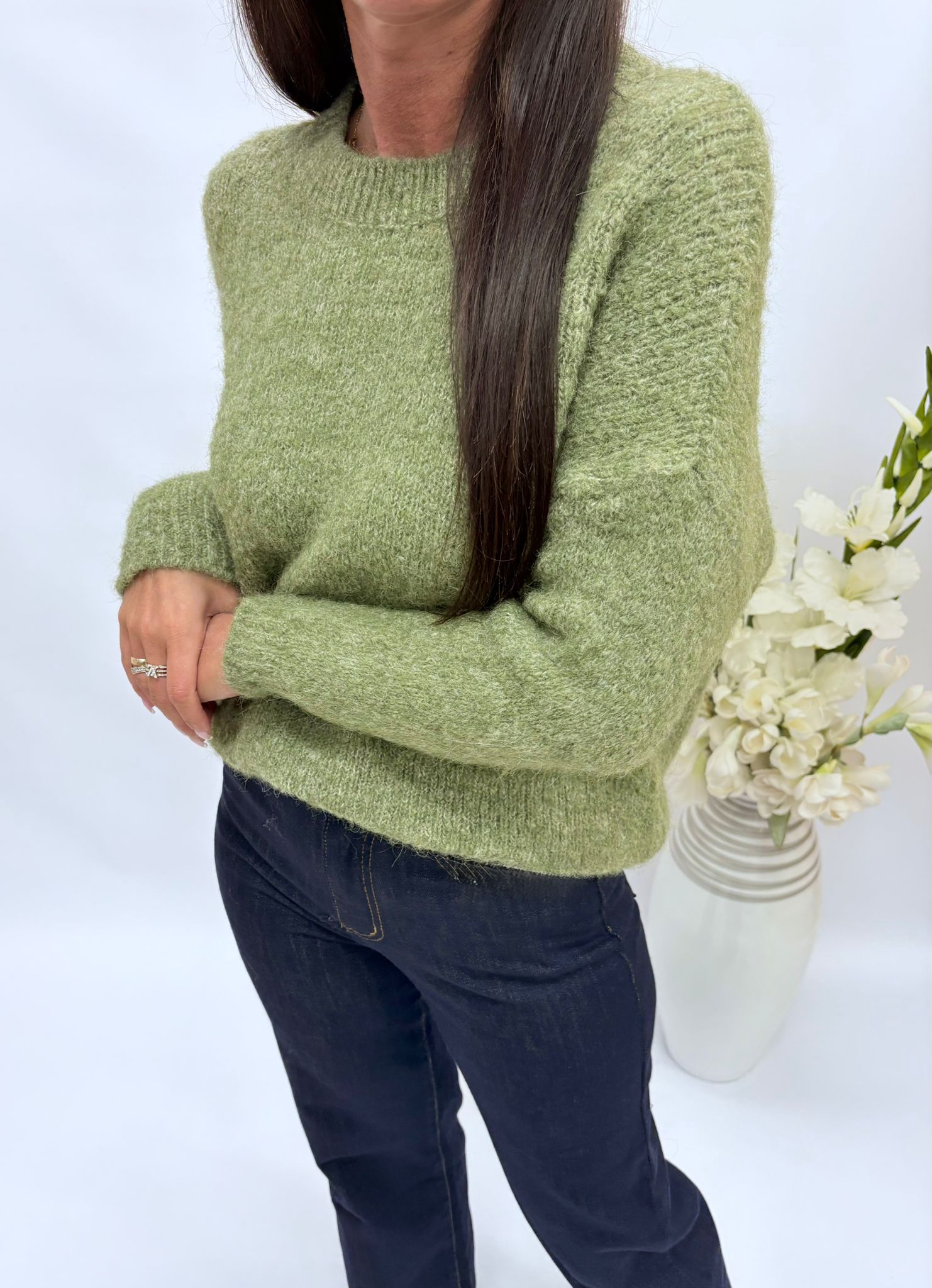 Sweter damski klasyczny oliwka