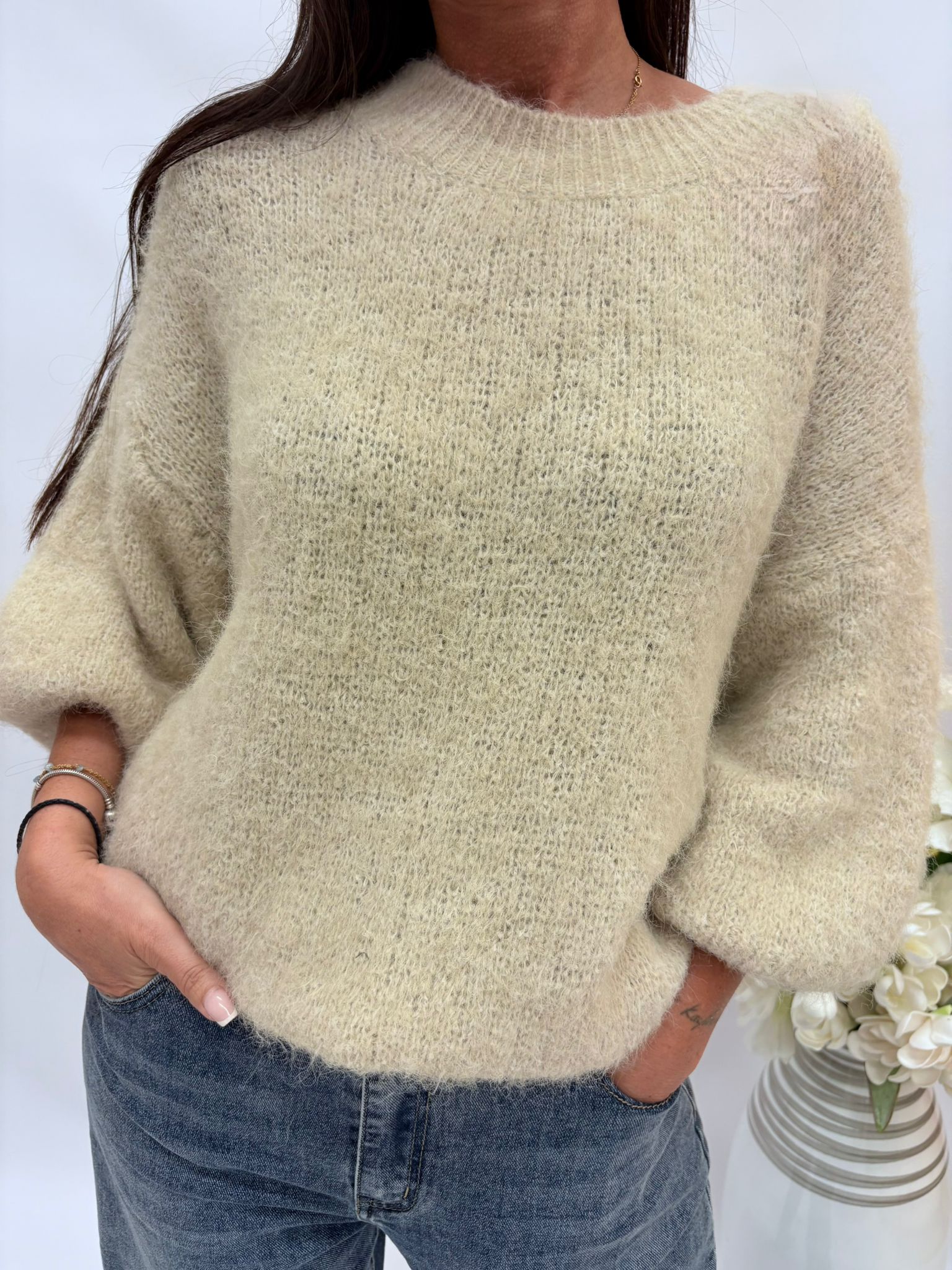 Sweter damski rękaw 3/4 beż