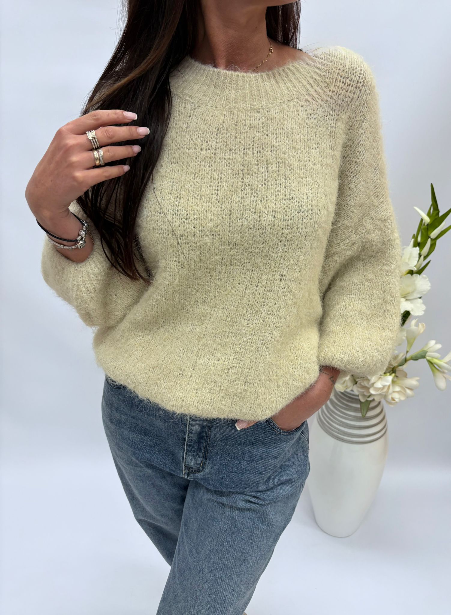 Sweter z rękawem 3/4 to propozycja idealna na przejściowe pory roku. Wygodny i lekki, a jednocześnie zapewnia ciepło w chłodniejsze dni. Rękaw 3/4 nadaje mu subtelnej elegancji i sprawia, że świetnie prezentuje się zarówno w codziennych jak i bardziej stylowych zestawach. To uniwersalny model, który z łatwością połączysz ze spodniami, spódnica czy sukienką tworząc kobiecą stylizację.