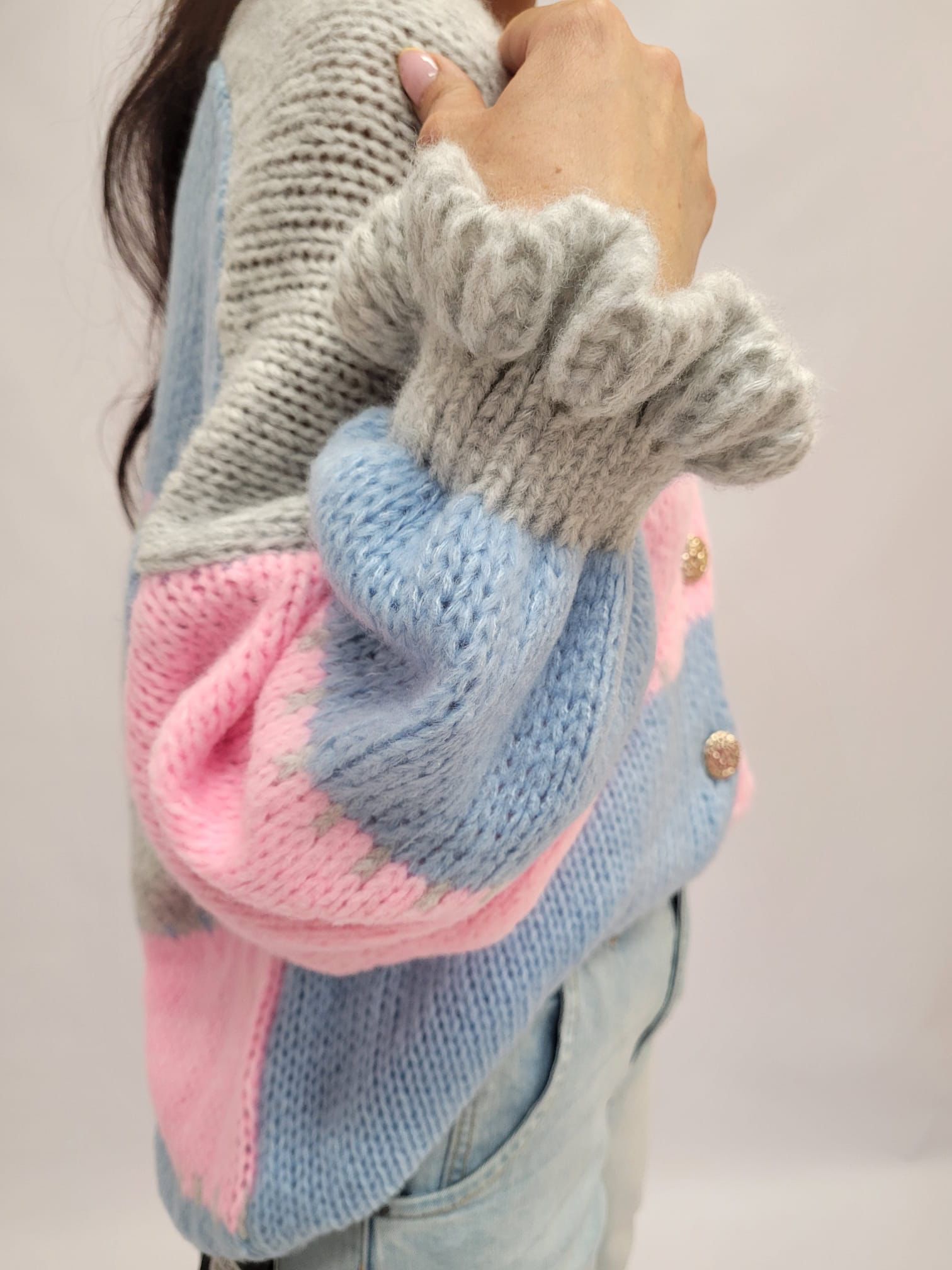 Sweter damski rozpinany niebieski- róż