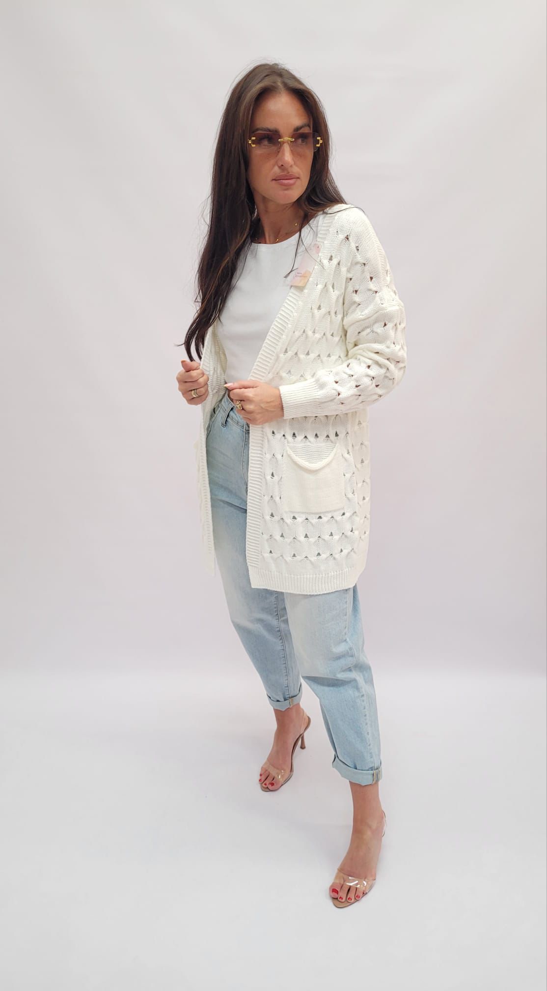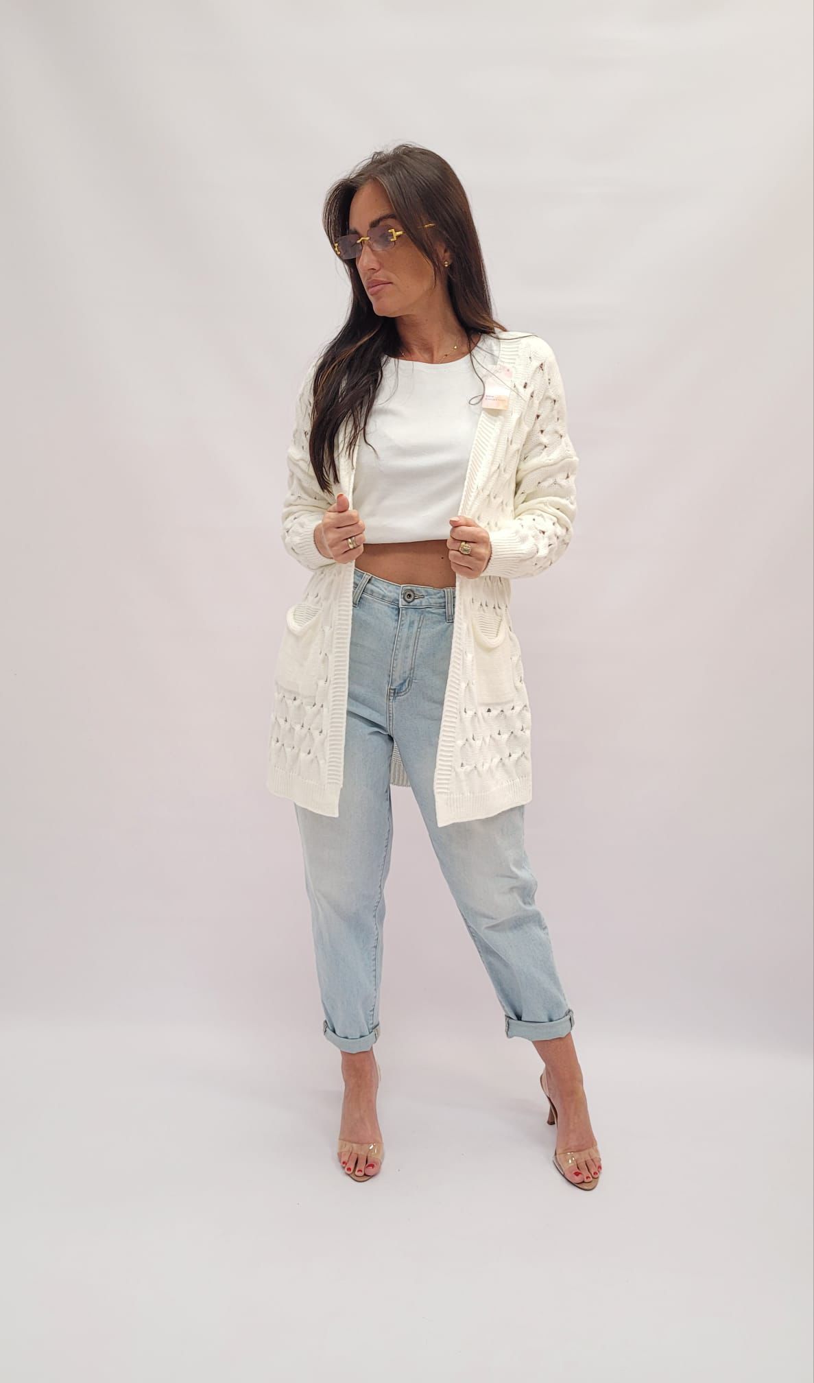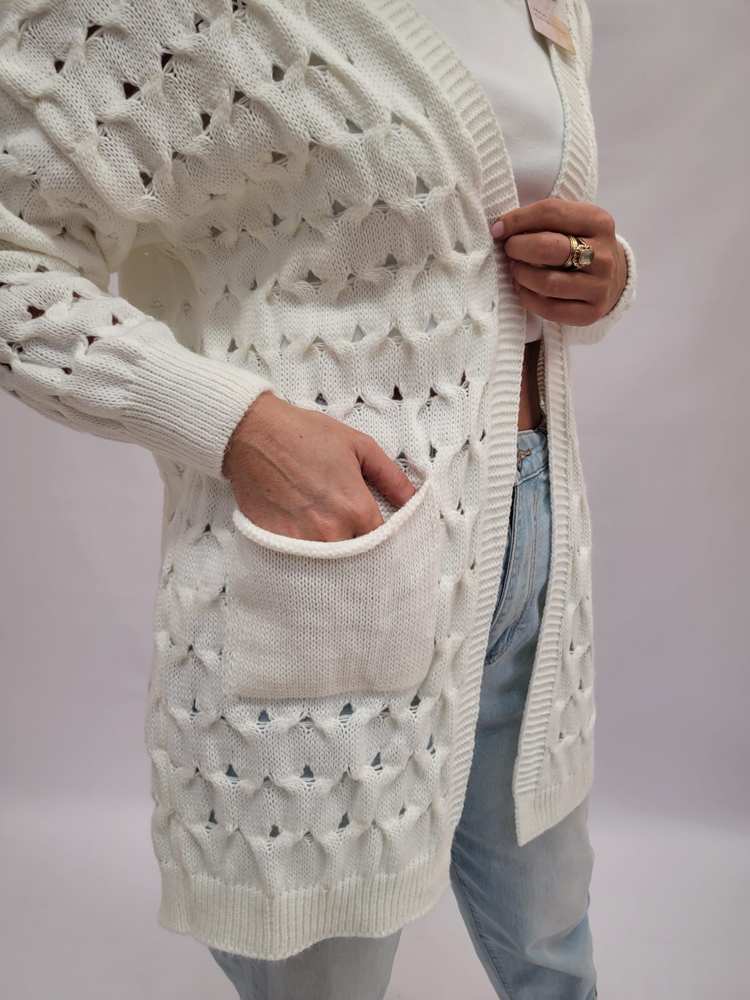 Letni ażurowy sweterek na letni wieczory to idealne dopełnienie każdej stylizacji, gdy słońce zaczyna zachodzić. Wykonany z miękkiej i przewiewnej dzianiny subtelnie otula ciało.