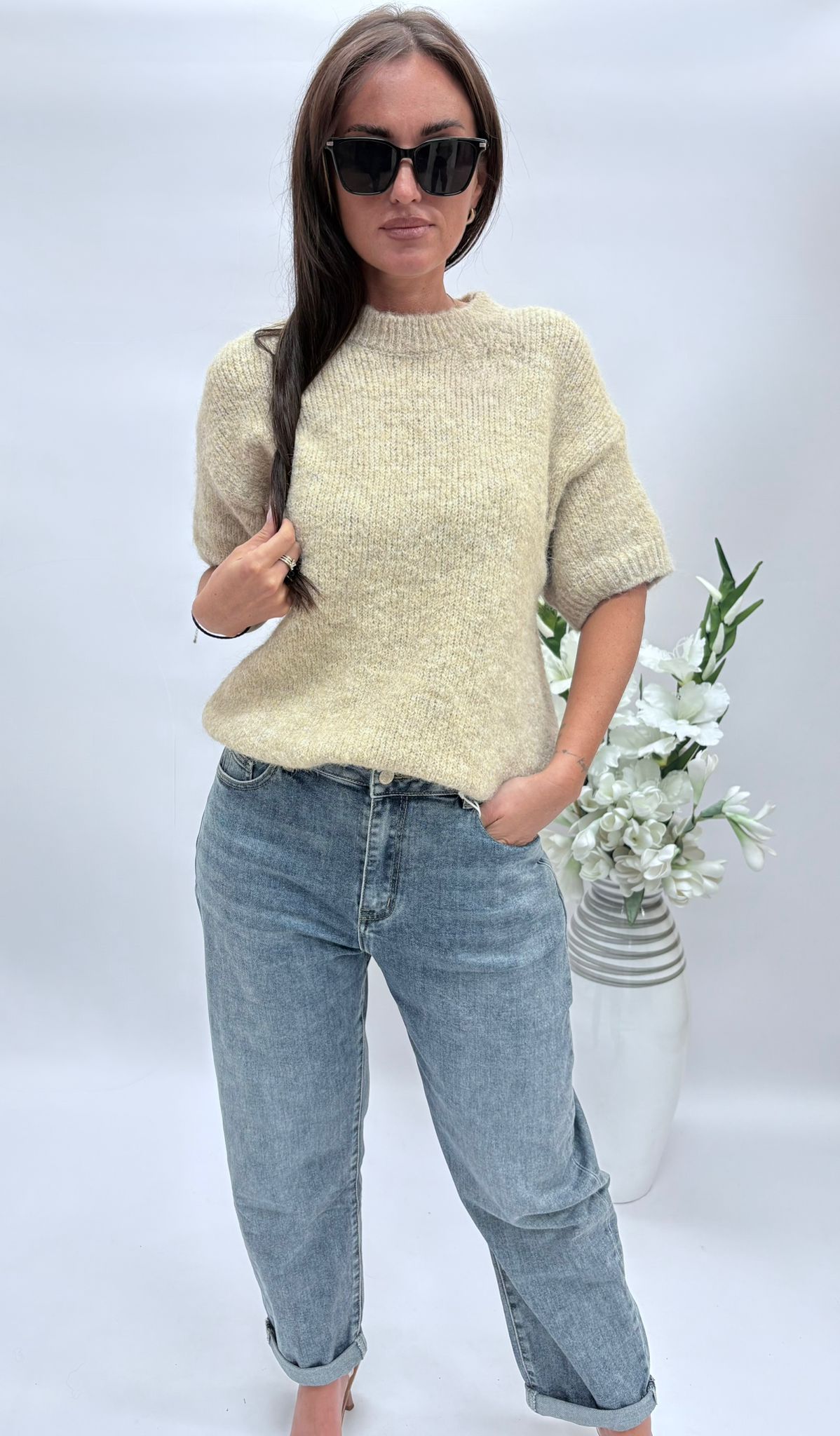 Sweter z krótkim rękawem to najmodniejszy trend w tym sezonie jest połączeniem elegancji i wygody. Wykonany w miękkiej i przyjemnej w dotyku dzianiny, doskonale sprawdza się w każdej stylizacji codziennej i bardziej eleganckiej. Krótki rękaw nadaje mu lekkości, a nowoczesny krój podkreśla atuty sylwetki.