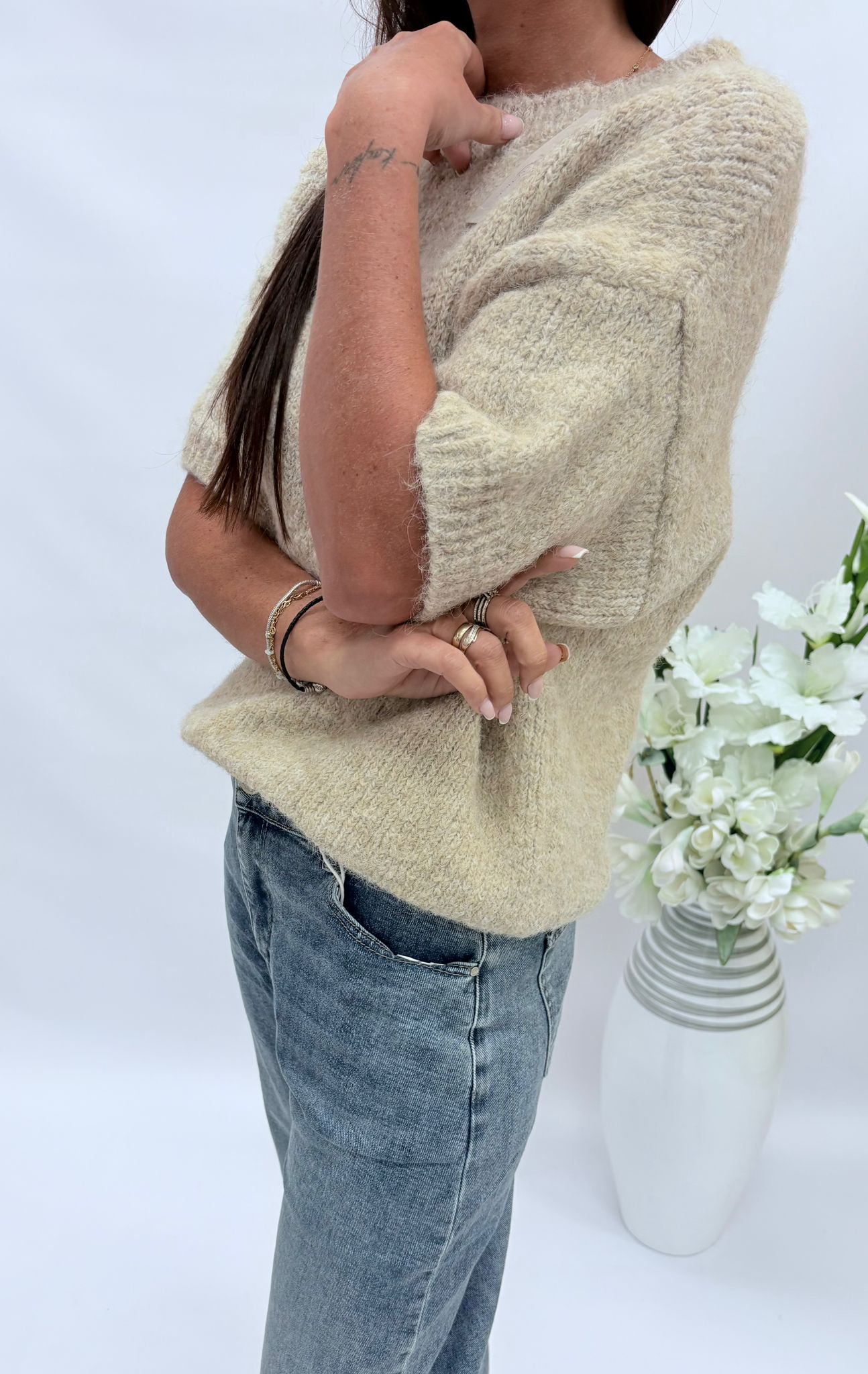 Sweter krótki rękaw beż