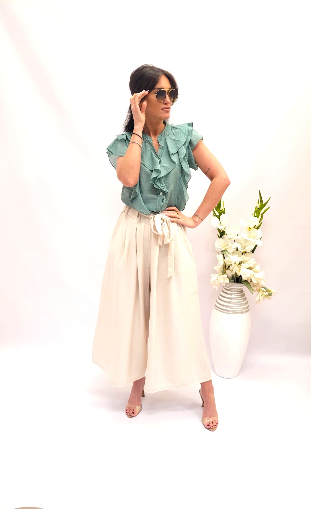 Te szerokie spodnie damskie 7/8 to strzał w dziesiątkę. Wykonane z lekkiego, przewiewnego materiału gwarantują komfort noszenia przez cały dzień, a ich luźny krój dodaje sylwetce lekkości i nowoczesnego charakteru.