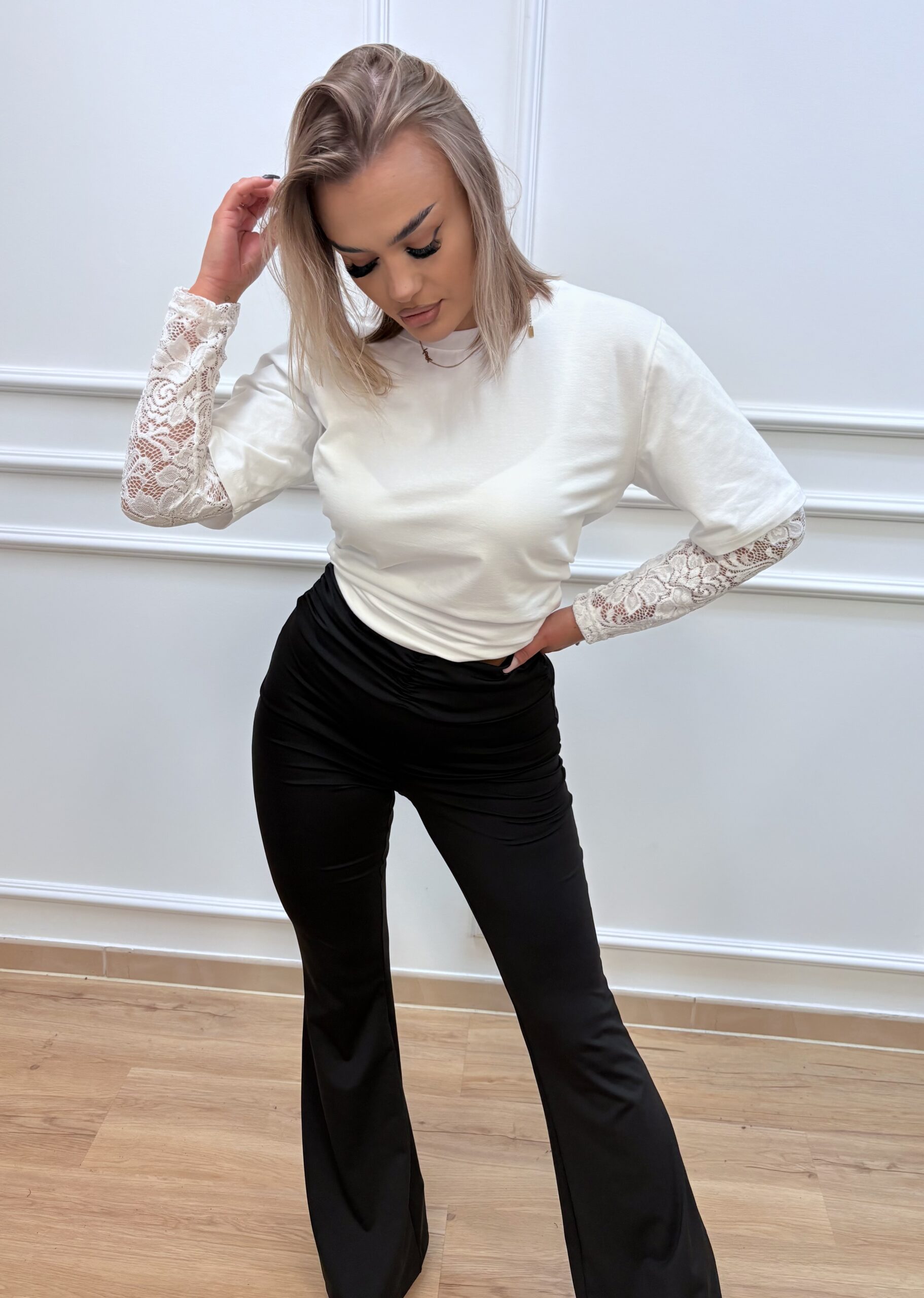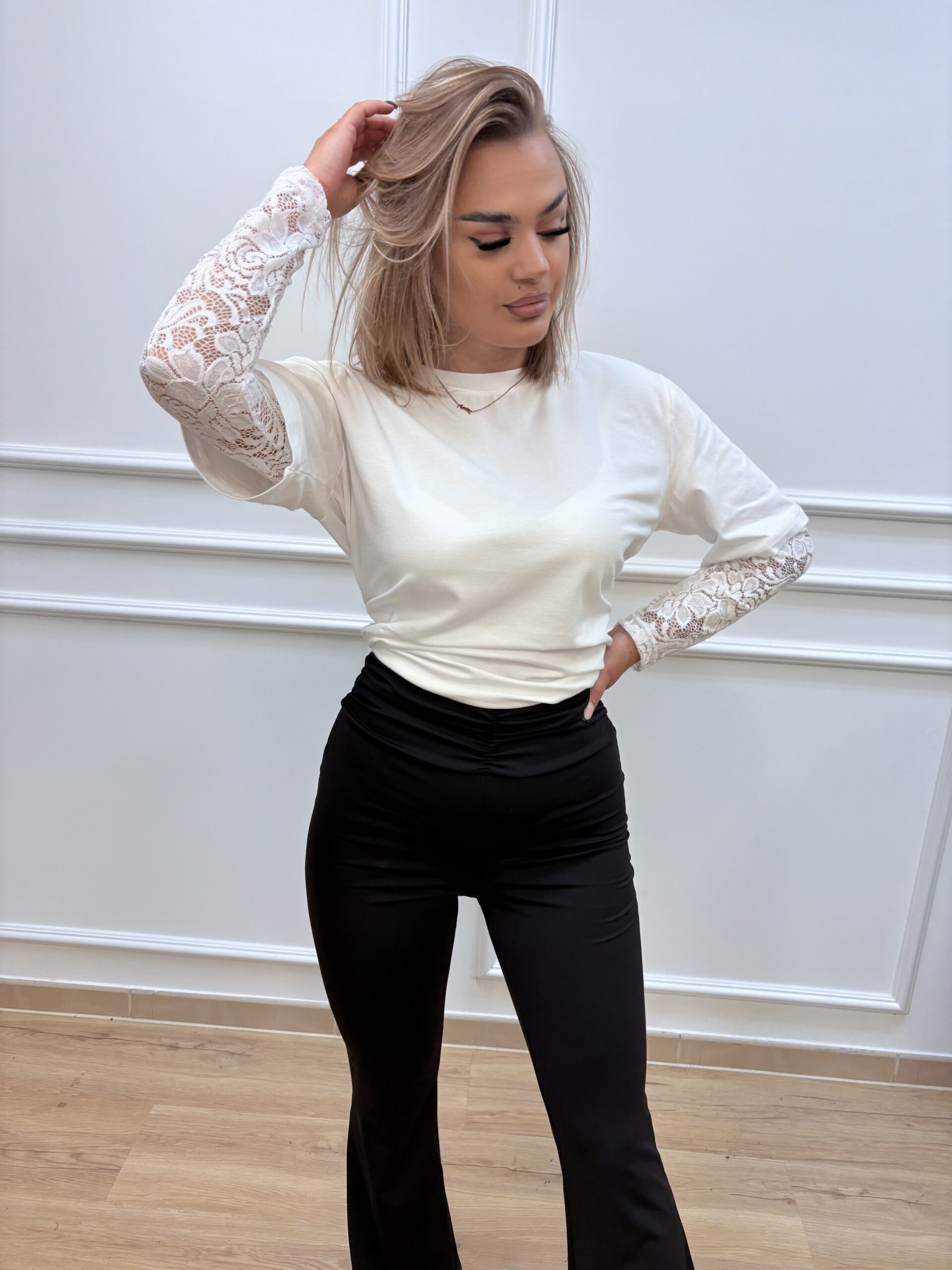 T-shirt z koronkowymi rękawami- biały